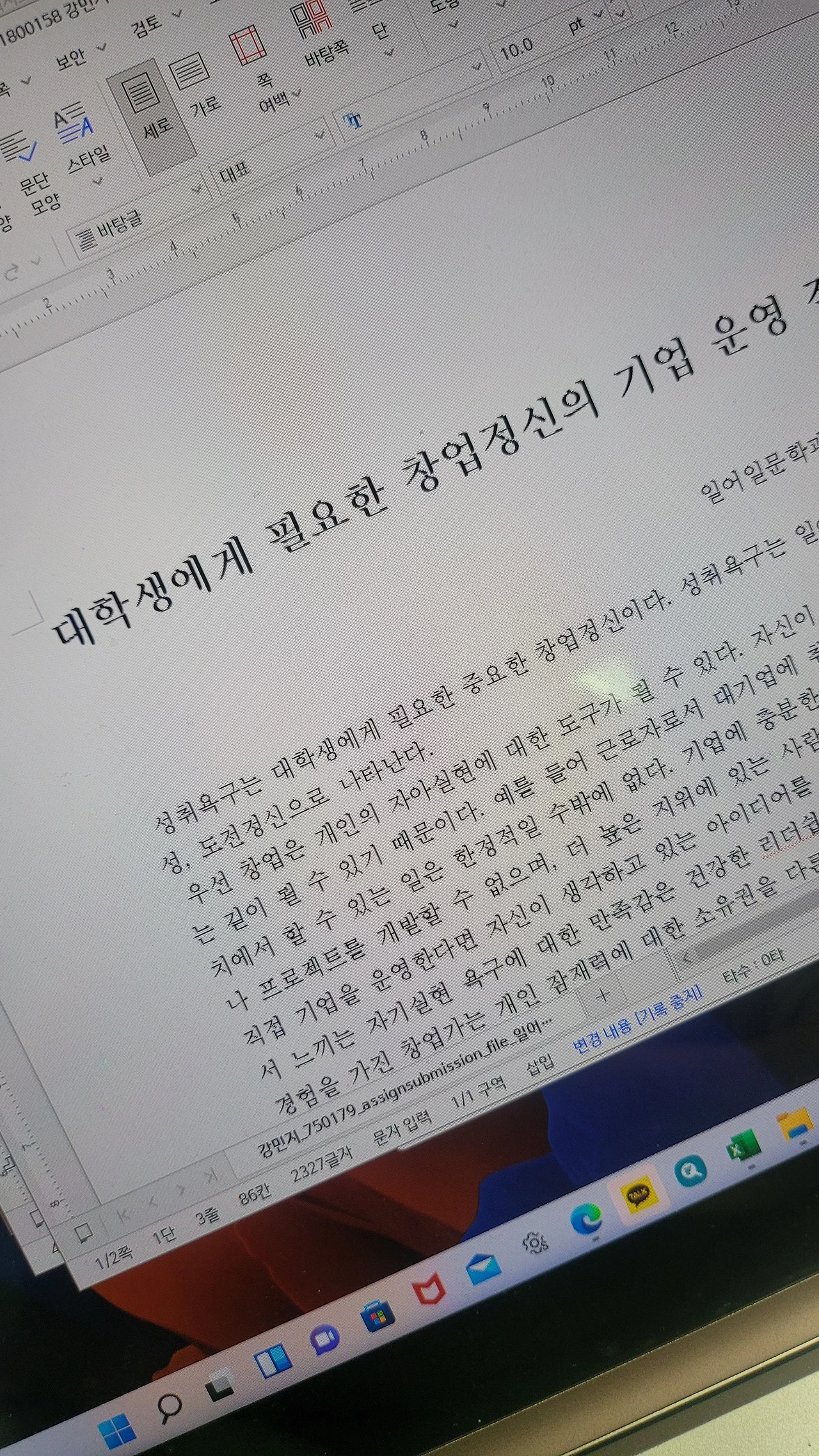 "대학생에게 필요한 창업정신과 그 정신을 현실적으로 기업운영에 적용할 수 있는 방안" 이었는데요.