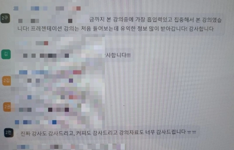 제가 프레젠테이션 기획과 여운남기는 법, 비언어 스킬까지 2시간 내내 전달하면서