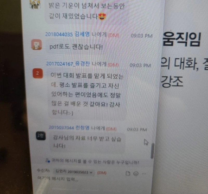 학생들이 정말 좋은 말들을 많이 해줬어요.