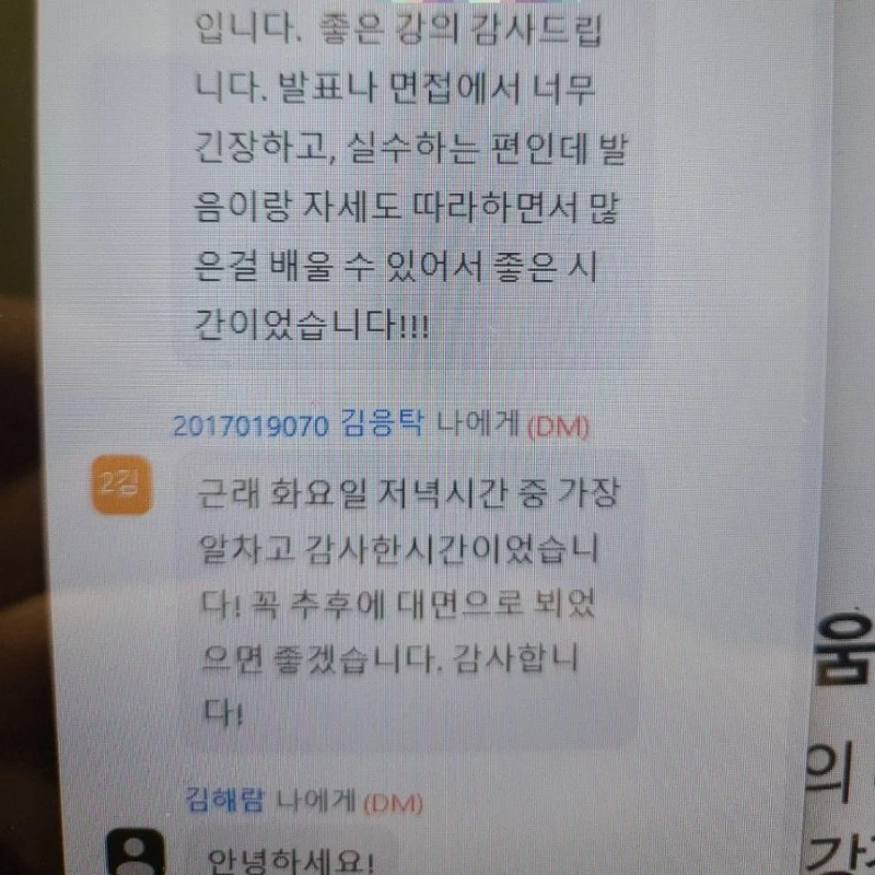 "화요일 저녁시간둥 가장 알차고 감사한 시간이었다"