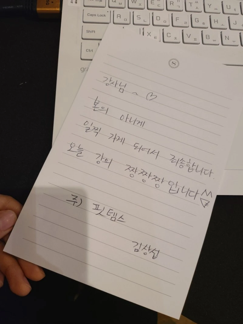 눈도 반짝거려 주시고, 심지어 저에게 이렇게 감동스런 메모도 남겨주십니다!