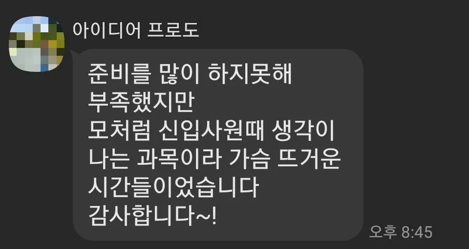 이번에도 큰 만족도로 후속 멘토링을 진행하게 되었습니다.
