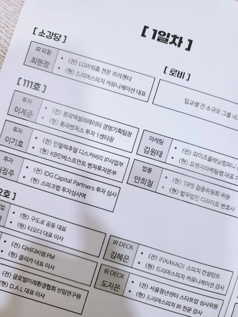 저희 드리머 강사님들은 IR덱 구성 멘토링을 다른 강의실에서 진행했어요.