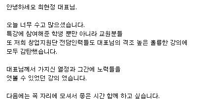 그래서 '격조높은 강의'라는 극찬까지 담당자님이 해주셨습니다 ㅠㅠ