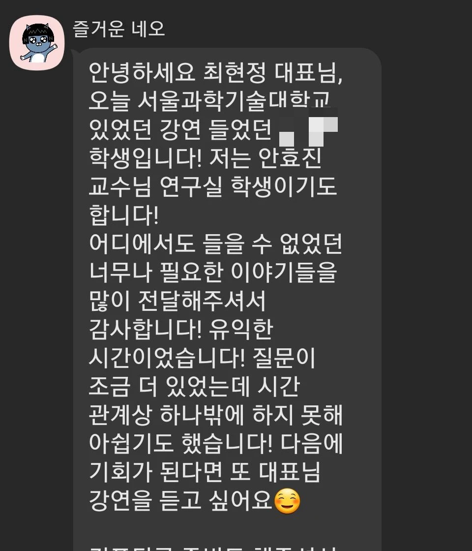 저의 서툰 과거와 경험을 이렇게 좋게 인정해주셔서 감사할 따름이었어요.