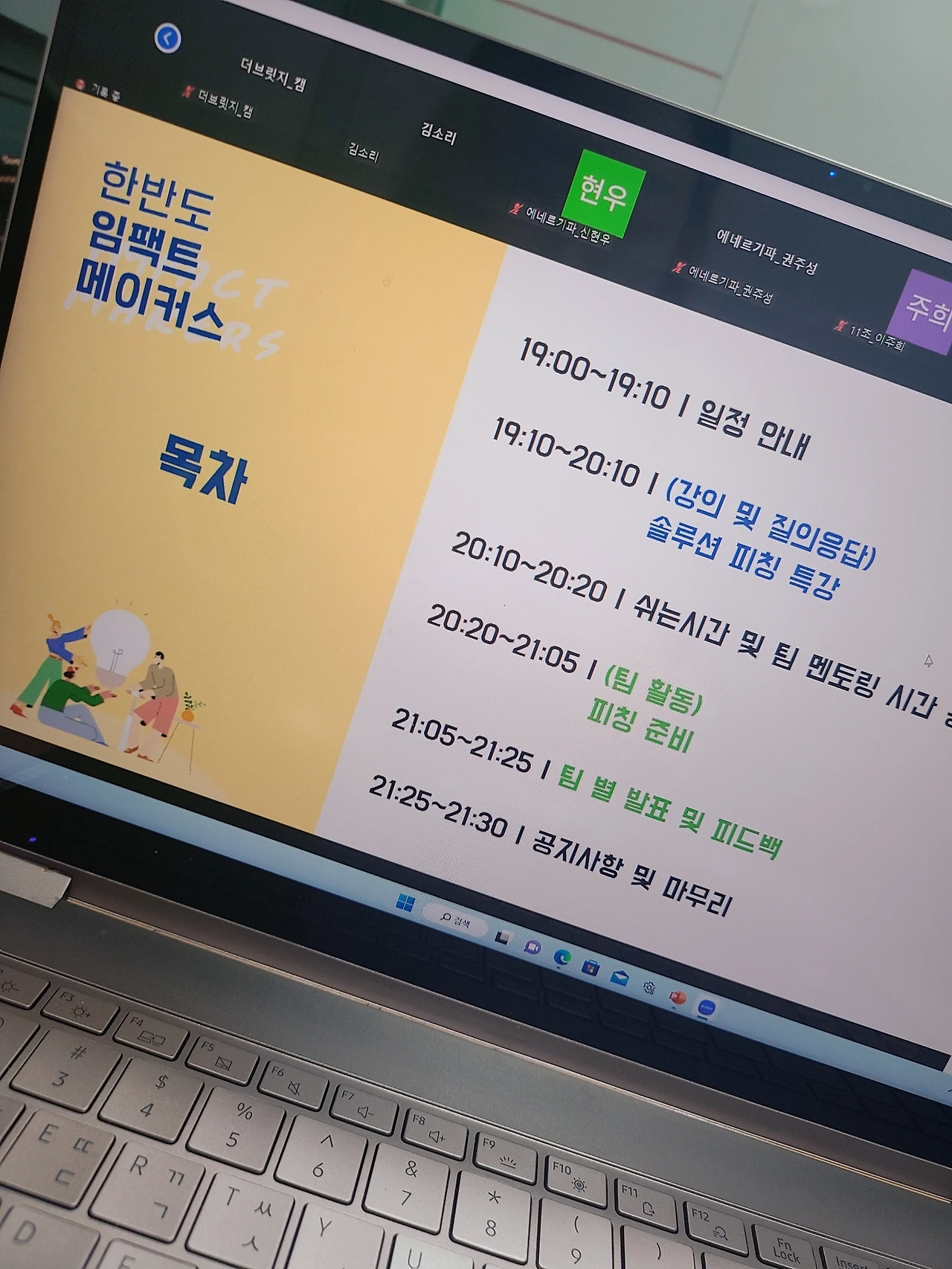 미리 수강생들의 피칭 성격을 파악하고,피칭 구성요소를 모두 이번 교육 맞춤형으로 변경했습니다.