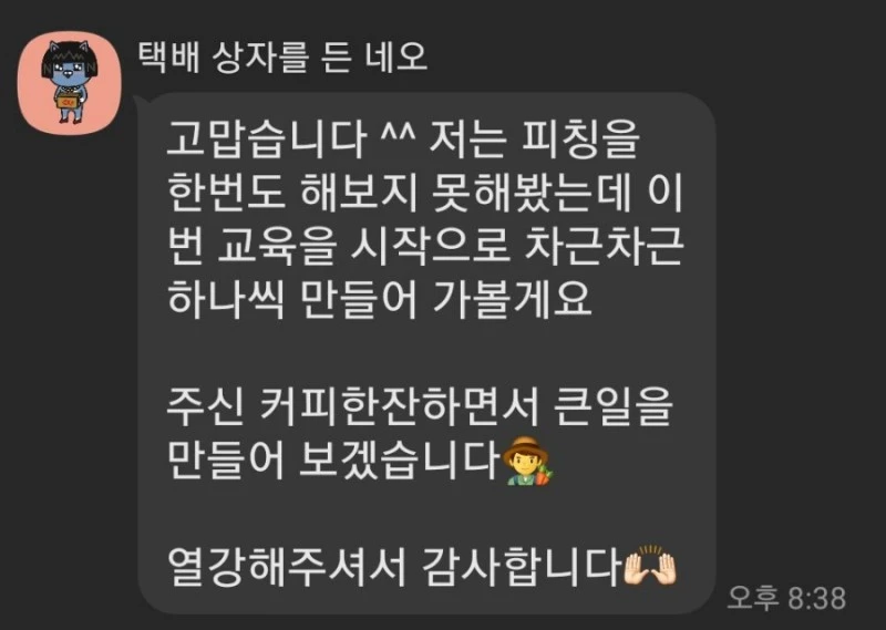 그래서 매일 매일이 챌린지지만 그것또한 기쁘게 받아들이고 있어요 :-)