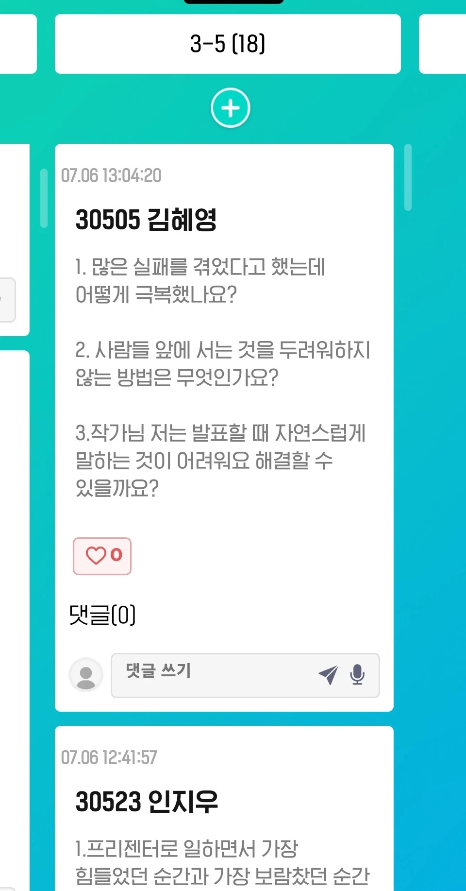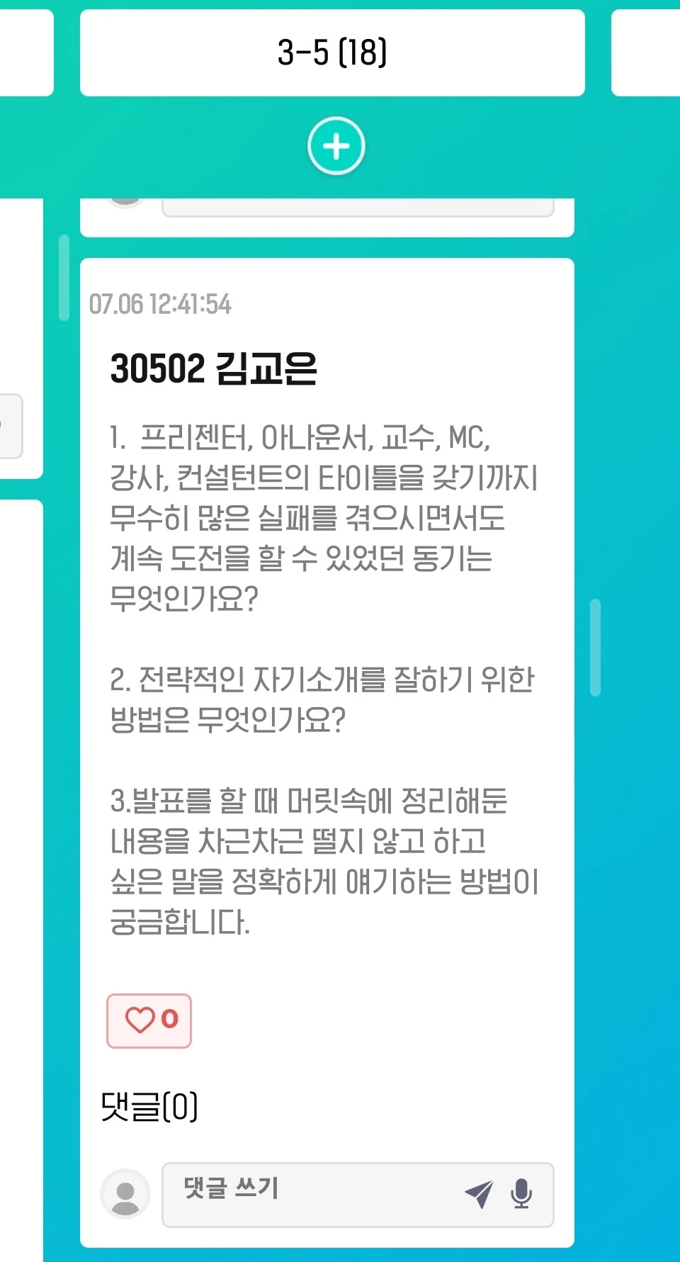 그 학생들이 모두 저에게 질문을 던져주셔서 어떤 질문을 선택해야할지 현장에서 꽤 고민했습니다.