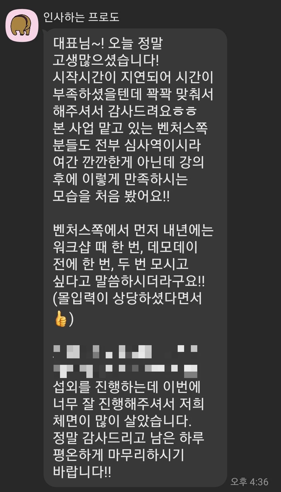 제 이전에는 이 기업의 내부 심사역님께서 IR덱 구성에 대한 특강을 한시간여 해주셨고요.