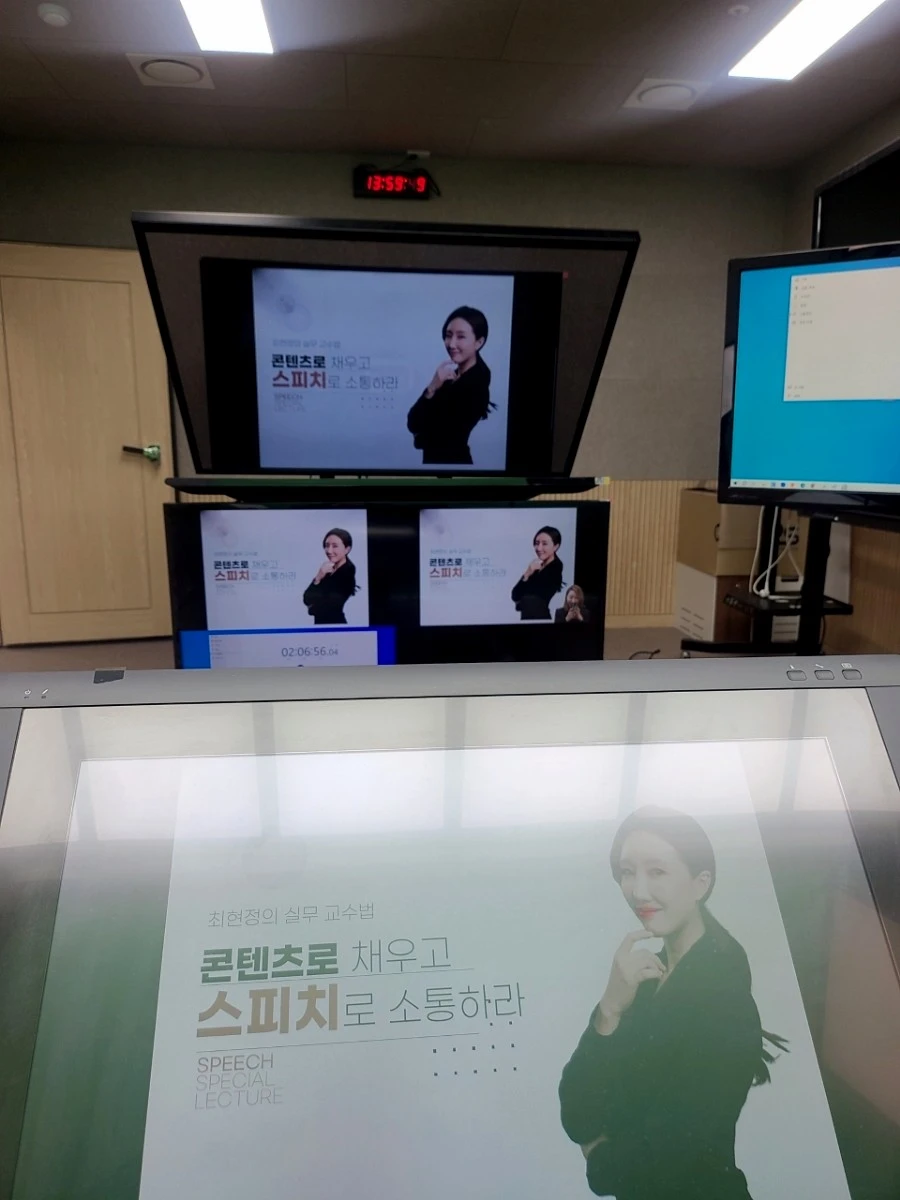 오늘도 스튜디오에 도착해서 화려한 조명을 받으며 강의를 시작했습니다.