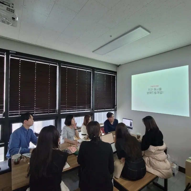 강사가 손을 바쁘게 놀리면서 기업의 컨셉에 맞는 초안을 직접 작성해야합니다.