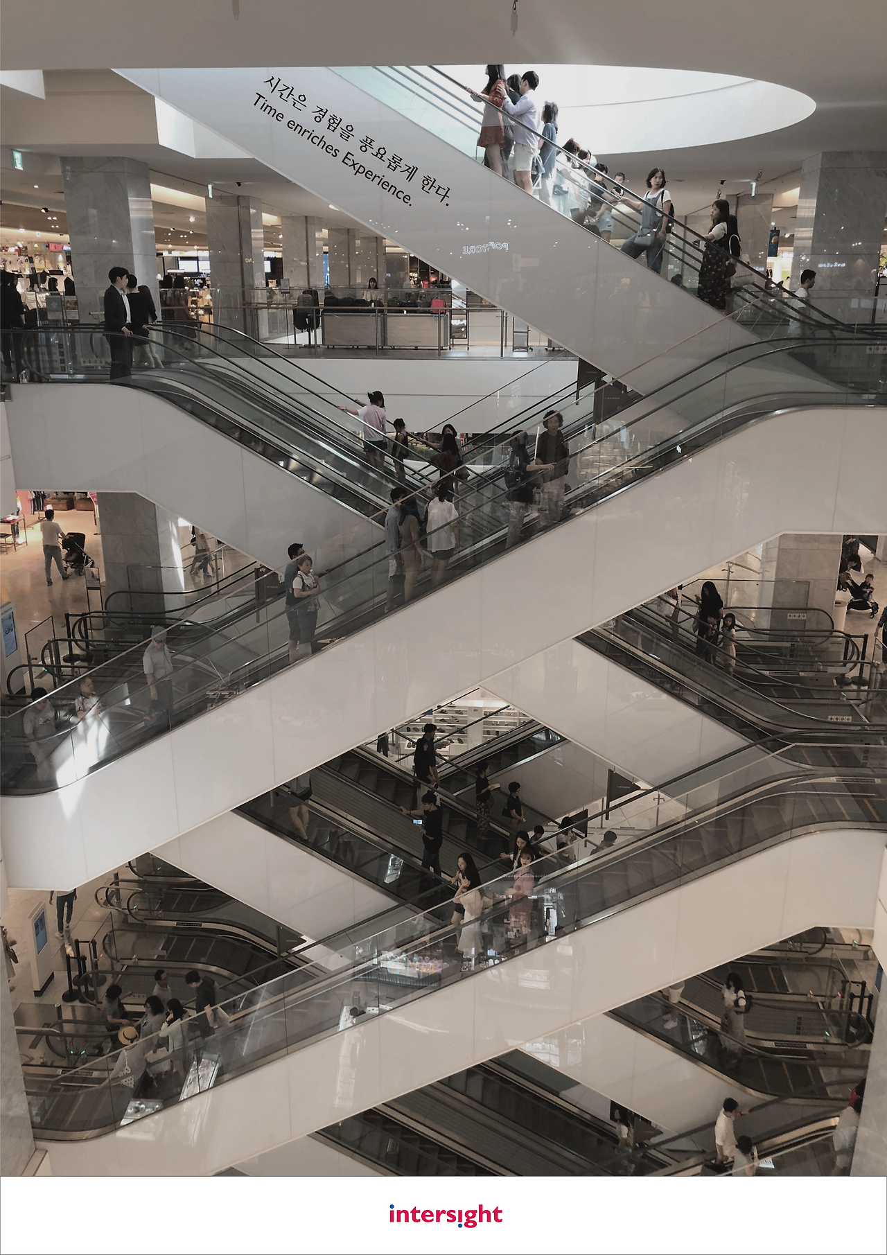브랜드 사파리 체험이 편리하도록 에스컬레이터는 끊임없이 오르락내리락한다. 그리고 콘텐츠를 팔기 위한 흐름이 끊기지 않도록 고객의 시간을 조정한다. 고객은 자연스럽게 체험존으로 유입되어 그 흐름을 이어가며 콘텐츠를 소비한다.
