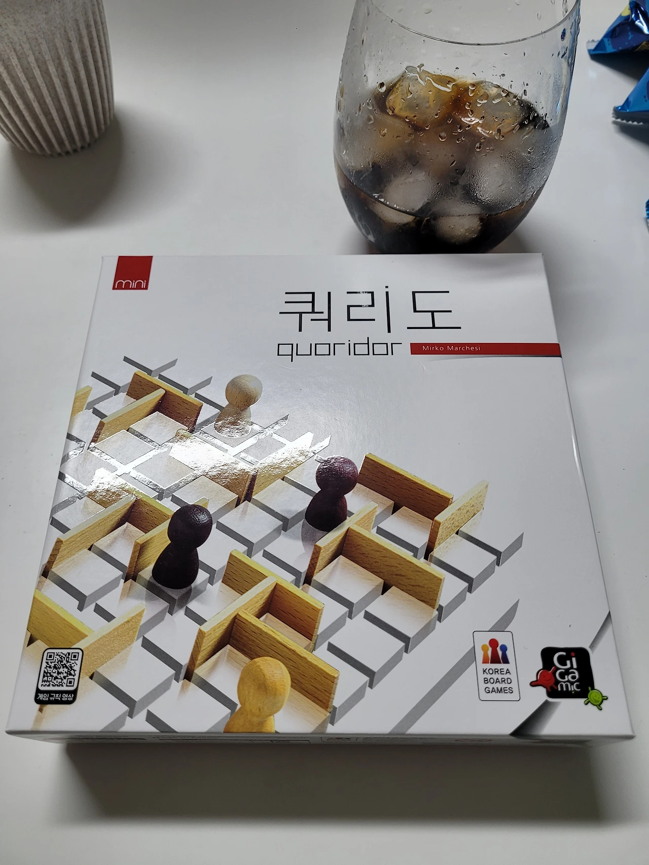보드게임 <미니 쿼리도>를 선물 받았다. 체스처럼 두 명에서 마주 보고 반대편으로 가야 하는 원리인데, 차이점이 있다면, 각자의 통로를 얇은 나무판자로 막는 것이다.(막는 데는 규칙이 있다.) 상대의 수를 읽고 어디를 막을지, 혹은 내가 어디로 일보 할지 따져야 한다. 과거해본 보드게임은 내 말만 잘 관리하면 되는 느낌이었는데, 조금 더 머리를 써야 된다. 친구들 놀러 오면 같이 하자고 해야지.