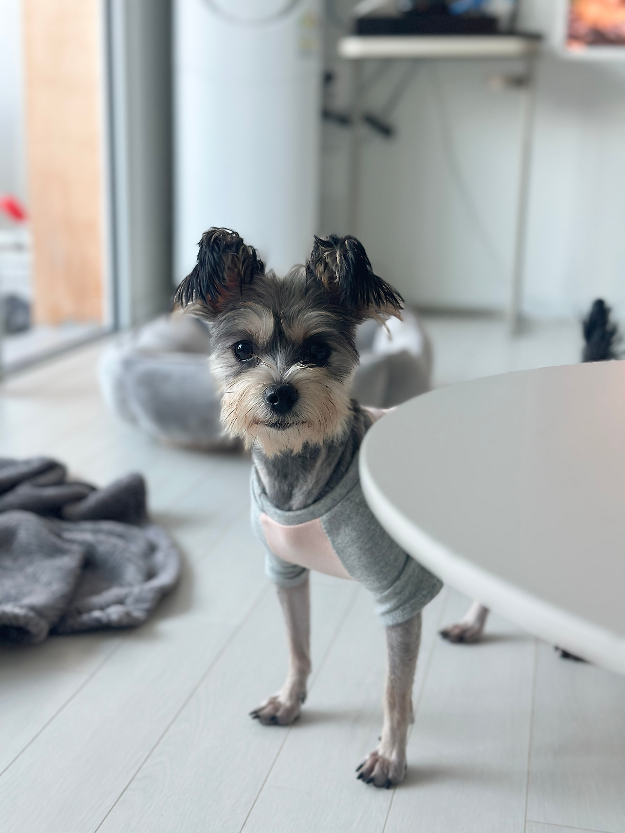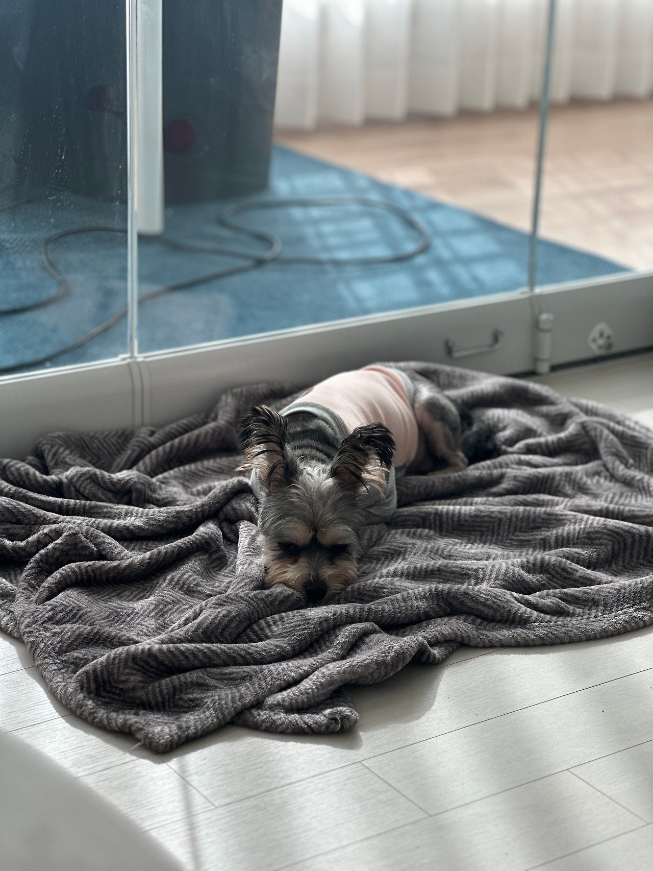 그러다 안되겠다 싶어 옷을 벗기기로 했다. 쵸비가 계속해서 몸을 쇼파에 비비고 답답해하는 것 같았기 때문이었다. 어쩔 줄 몰라 카카오톡 유기견 오픈채팅에 들어가 자문을 구하니, 다들 그냥 후딱 벗기고 간식으로 무마하는 게 낫다, 라고 해서 바로 시도하기로 했다.