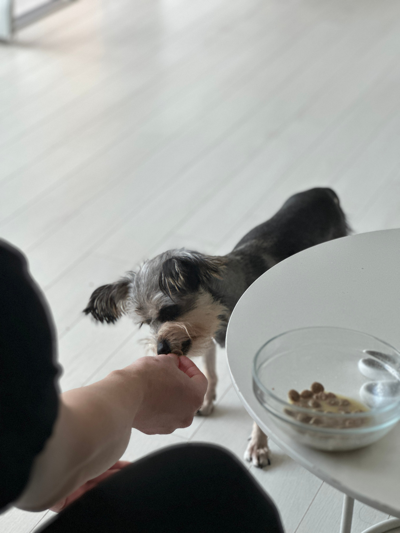아침엔 손으로 밥도 잘 받아 먹고, 우리를 덜 무서워해서 너무 행복했다.