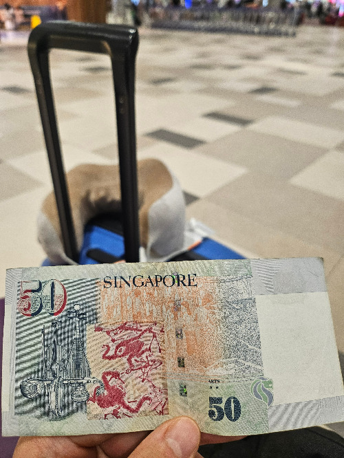 싱가포르 창이 공항에 도착하자마자 ATM에서 지폐를 뽑았다.