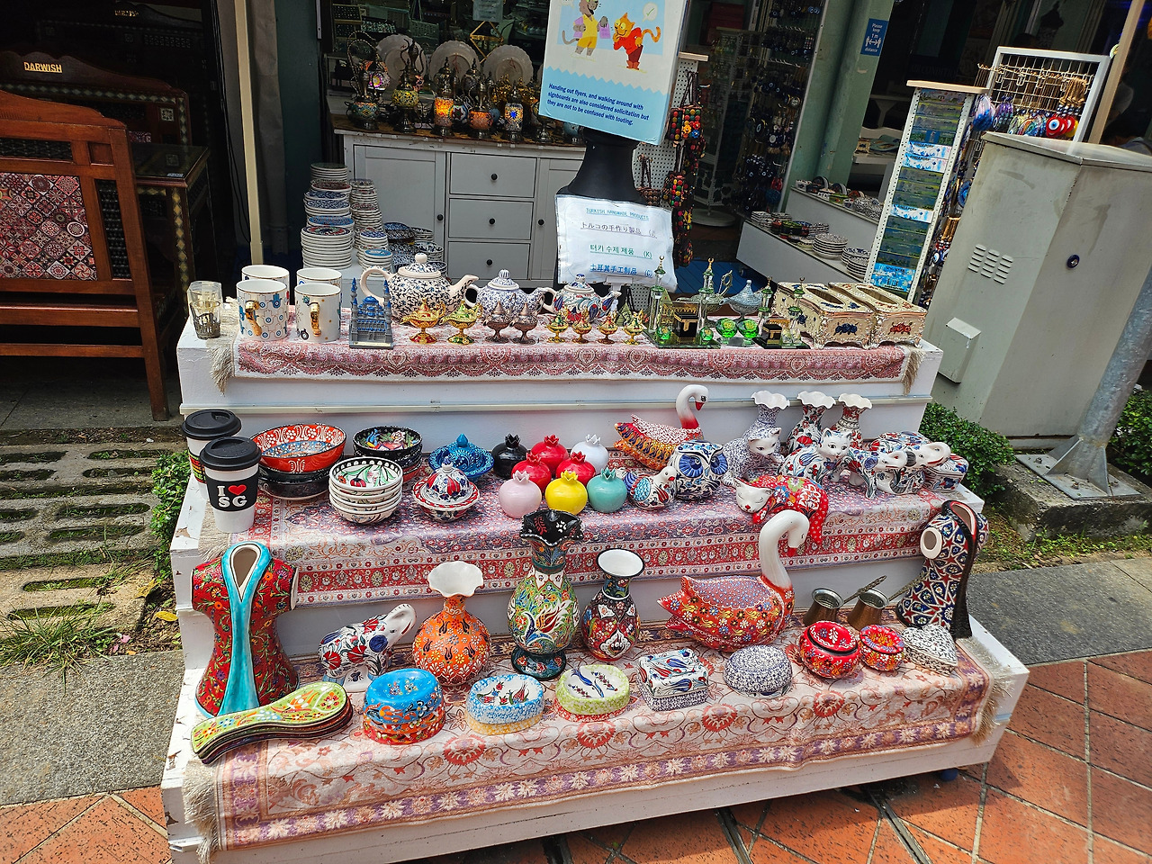 공예품 가게마다 무늬가 화려한 접시, 반짝이는 램프, 손으로 짠 카펫 등이 놓여 있었는데