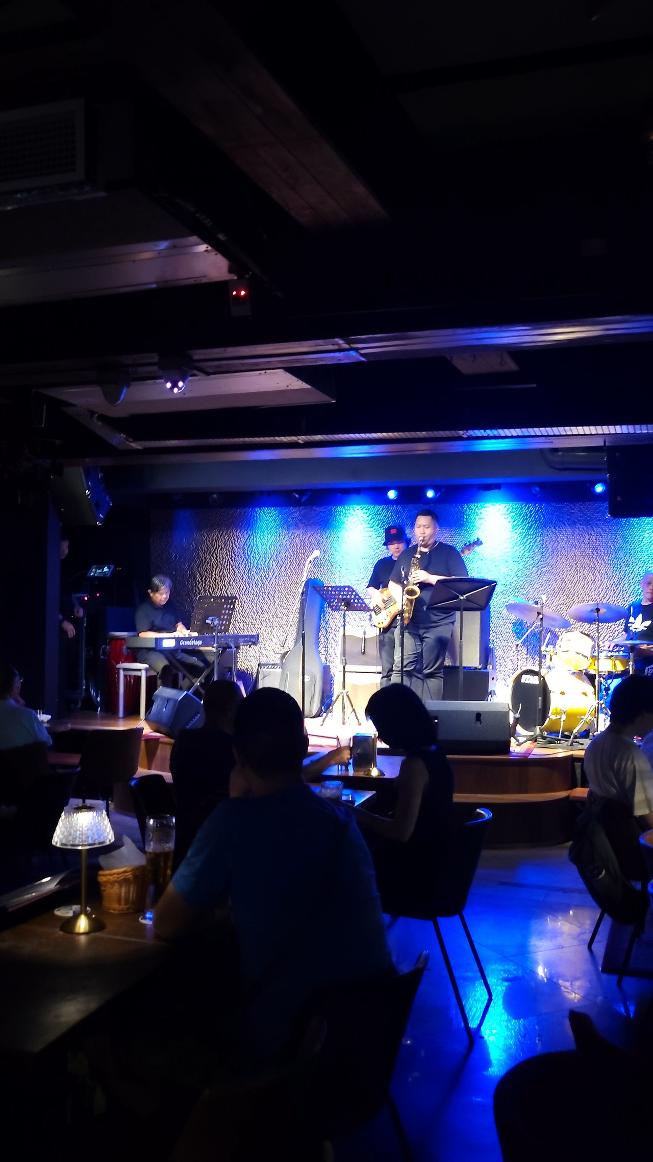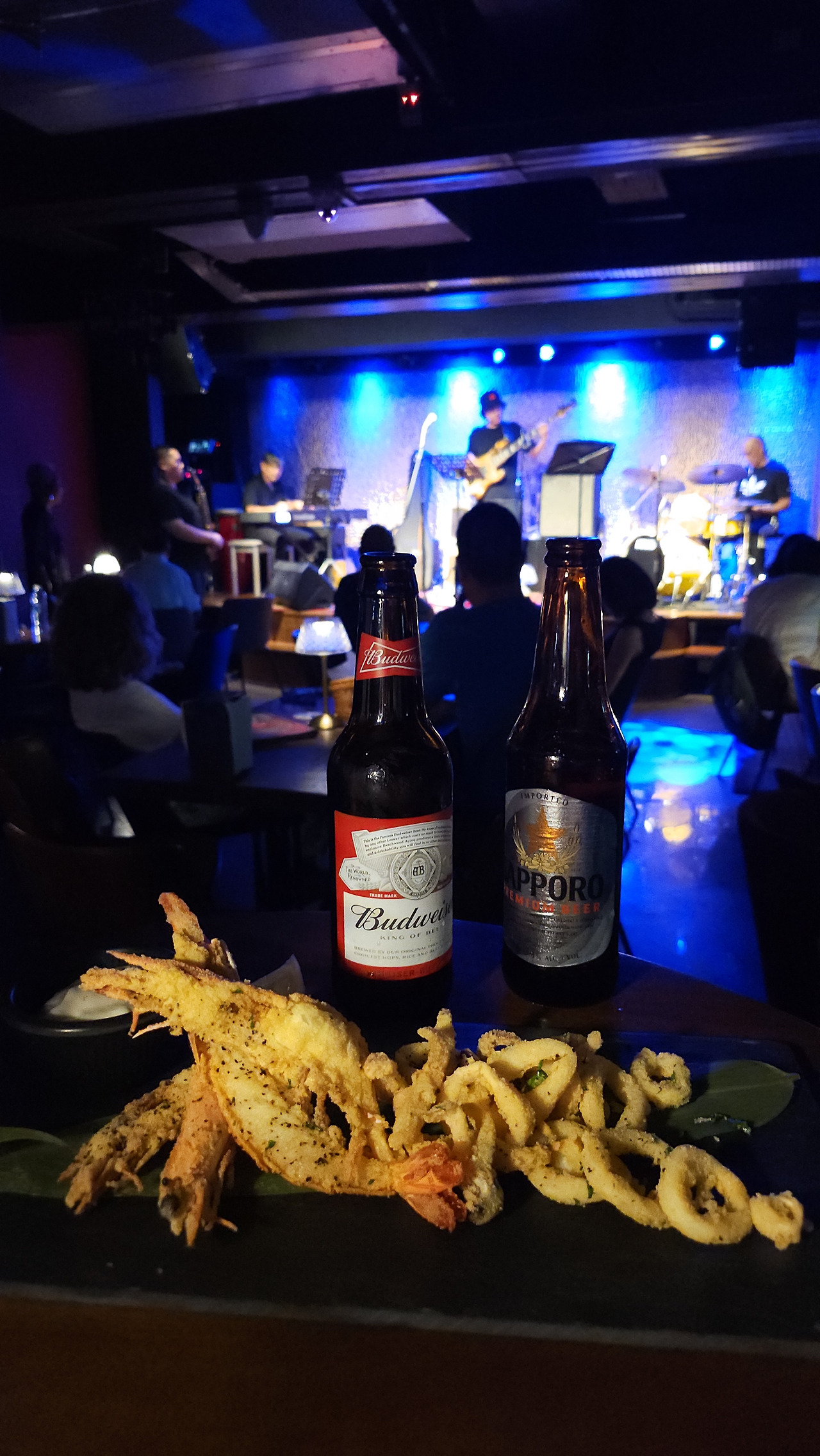 안쪽으로 들어가 맥주 두 병과 안주를 시키고 기다리는데, 연주자분들이 무대 세팅을 하고 있었다.