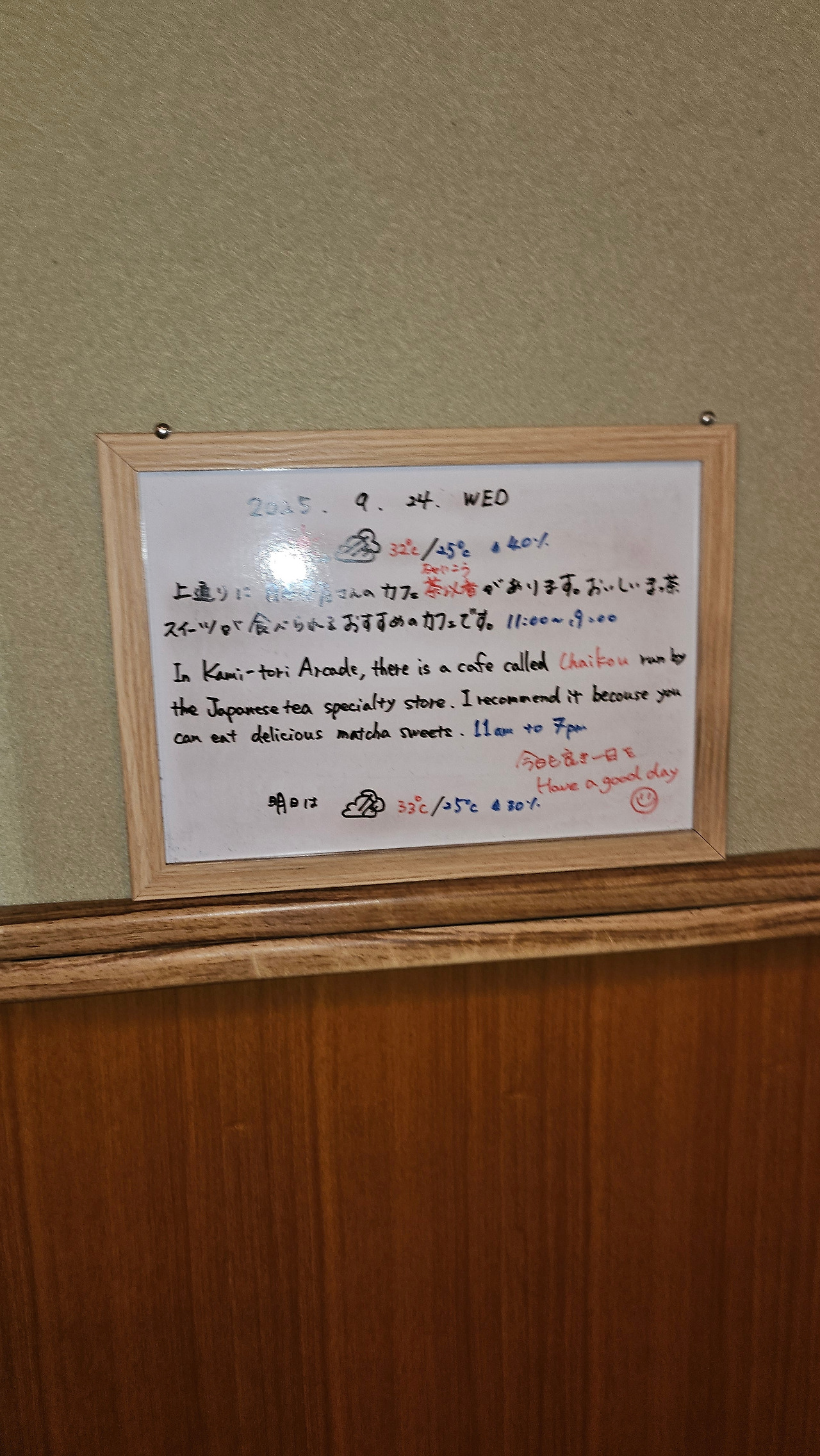이상하다는 생각이 들던 찰나, 문 앞에 붙은 일본어 안내문이 눈에 띄었다.