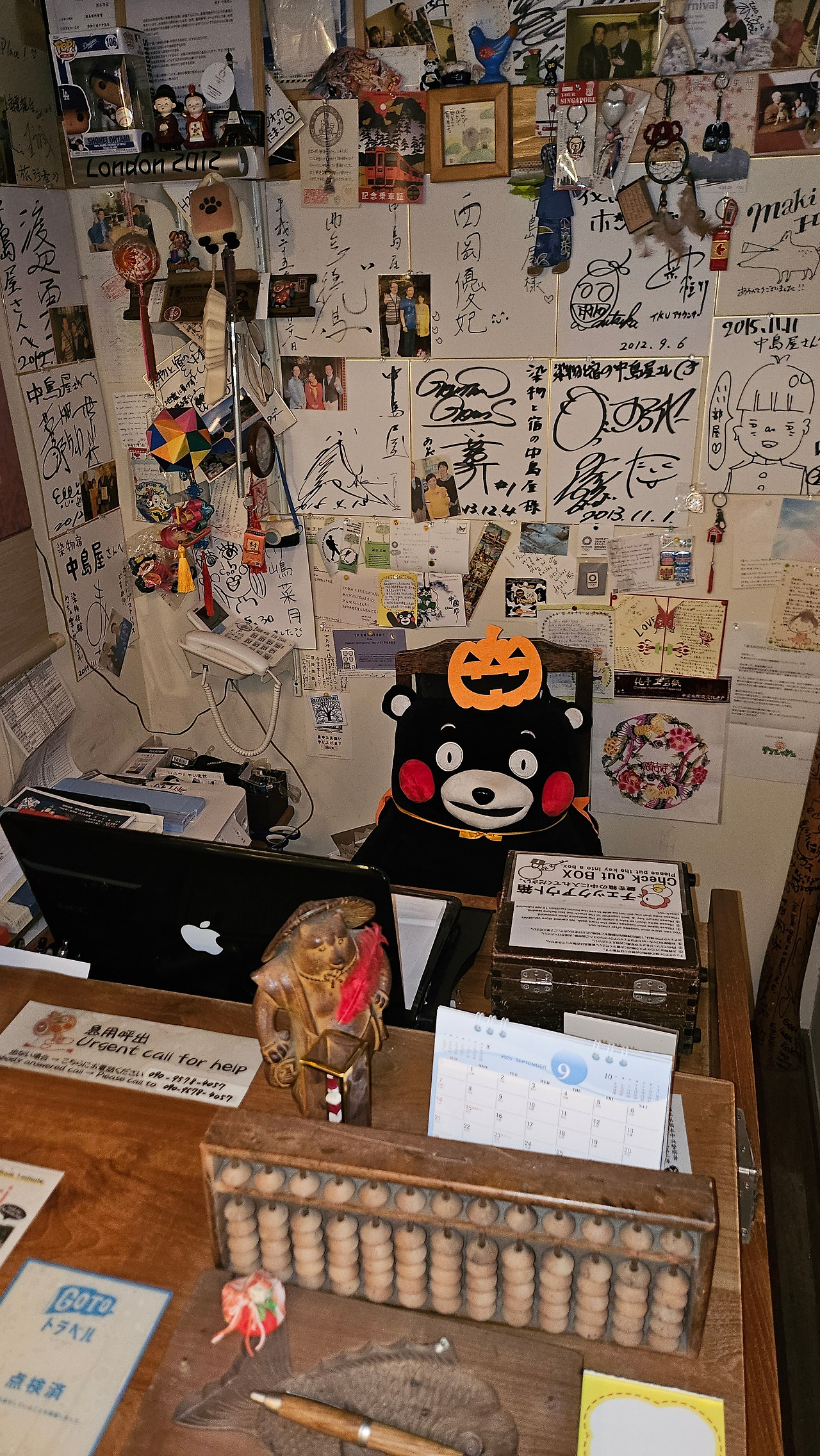 카운터에는 아침엔 없었던 쿠마몬 인형이 목재 의자에 앉아 있었고,