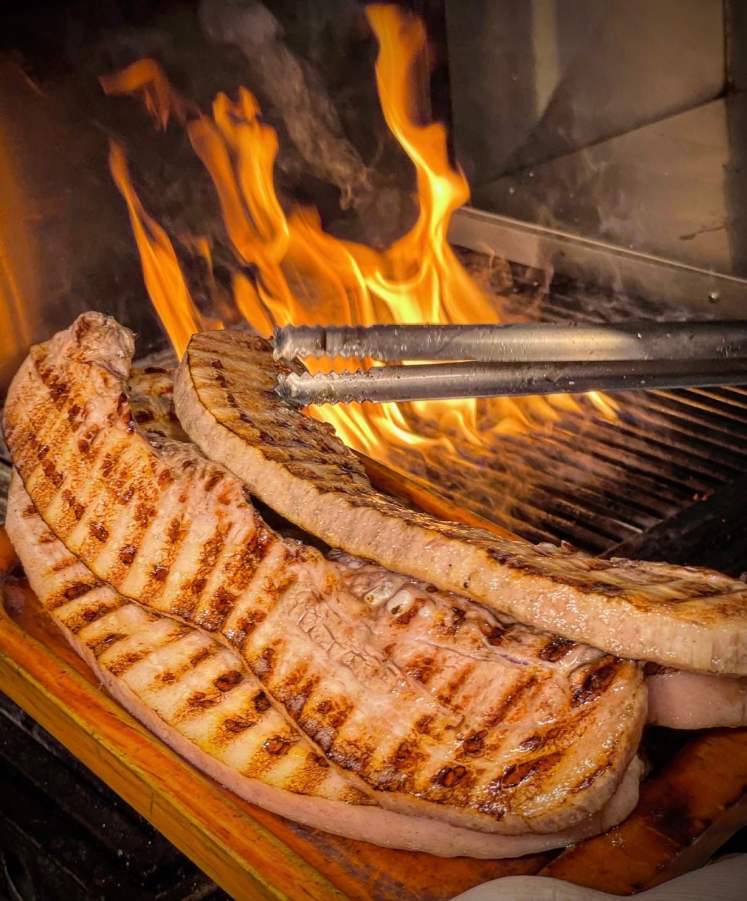 전통적인 돼지고깃집의 모습은 드럼통 숯불구이 테이블에 손님들이 둥글게 앉아 주방에서 나온 고기를 직접 구워 먹는 그림이죠. IMF 때 저자본 창업으로 호황을 끌었던 아이템이기도 해요. 당시에는 삼겹살이 저렴했기 때문에 손님이 직접 구워 먹는 그림이 더 어울렸습니다. 격식이 필요하거나 축하를 위한 자리라면 삼겹살보다 돼지갈비를 먹으러 외식을 나갔어요. 돼지갈비는 양념이 되어있고 지방이 적어 잘 굽지 않으면 금방 타기 때문에 그릴링을 해주는 매장도 있었습니다. 요즘은 삼겹살 가격이 돼지갈비보다 저렴하다고 말할 수 없는 시대이니까 삼겹살 문화가 고도화된 게 어쩌면 당연하게도 느껴져요.