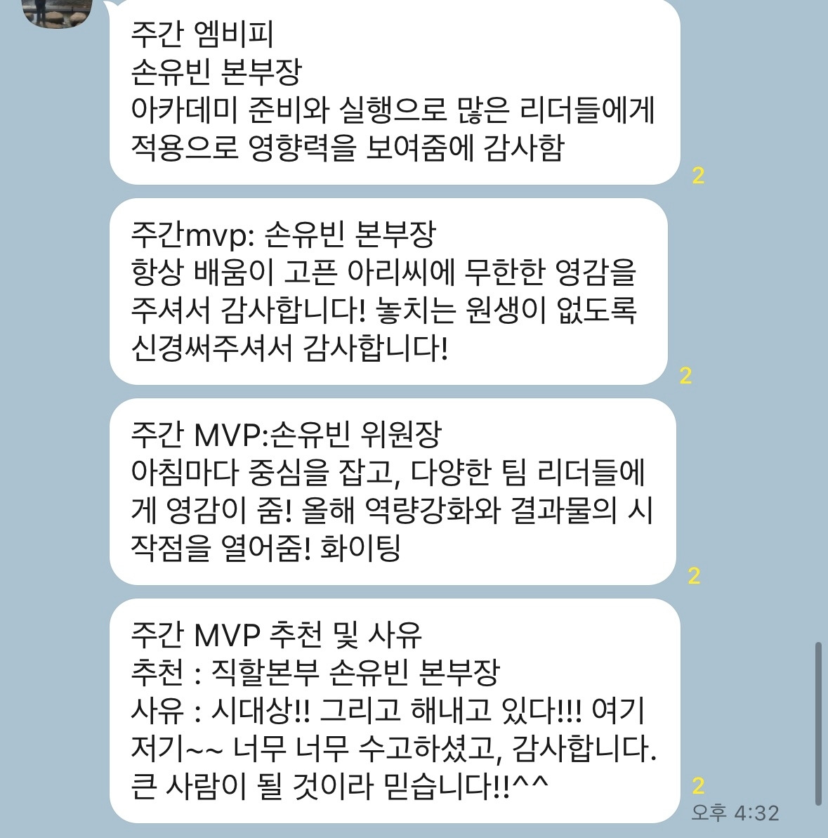 "실장이 생각해서 말하는 것들, 발표 자료들 다 보고 있는데 그건 그냥 하루 아침에 생각한다고 나오는 게 아니야. 내가 잘 알지. 다른 리더들은 그냥 네가 잘한다고 생각하겠지만 나는 네가 잘하기 위해서 퇴근하고도, 주말에도 고민 많이 했다는 걸 안다."