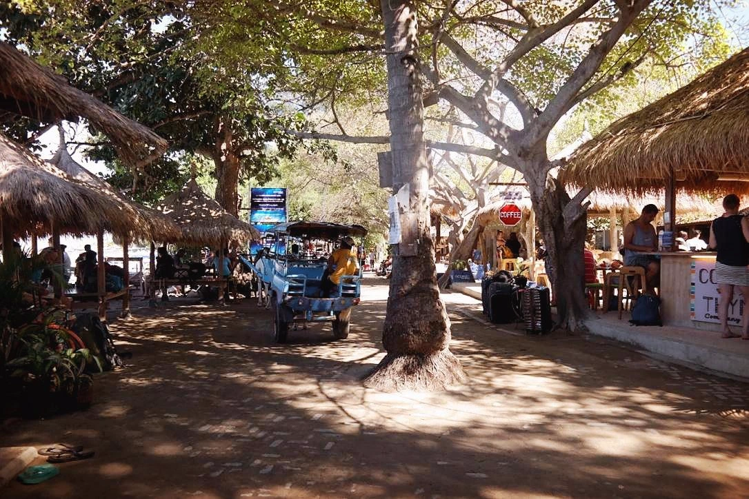 긴 시간 꿀렁이는 배를 타고 겨우 섬에 도착. 오는 동안 바닷물까지 머금었는지 여행자의 배낭은 더욱 가혹하게 느껴지는데. 선착장에는 숙소로 당신을 데려다 줄 그 흔한 오토(Auto) 바퀴들이 보이지 않는다. 그때 당신의 눈을 의심케 하는 그것! 네 바퀴로 가는 자동차도, 인도네시아 어디에서든 사람만큼 많이 마주치는 오토바이도 아닌, 오직 두 바퀴로만 가는 마차. 분명 당신은 방금 전까지 비행기로 인근 발리에 도착, 다시 바다를 사정없이 가르는 위력적인 스피드 보트를 경험했는데. 그동안의 행간을 깔끔하게 생략한 느닷없는 마차를 보게 될 것이다. 그리고 또 다른 두 바퀴인 자전거와, 대여도 필요 없는 당신의 튼튼한 두 다리가 이 섬을 보행하는 유일한 이동수단이다. 그렇다, 길리 T에는 연료로 움직이는 어떤 교통수단도 없다.