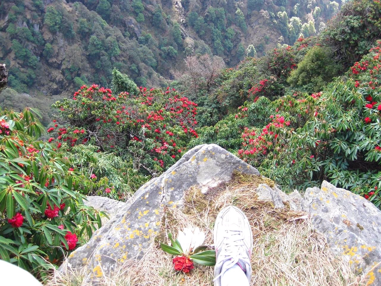 (사진) 이 같은 환대를 받아본 적이 있었는가. 산으로 들어가는 지천이 붉은 꽃의 향연이다. 설산의 봄을 가장 먼저 반겨주는 랄리구라스. 새빨간 꽃이 군락을 이뤄 듬성듬성 산의 온기를 더해줬다 (2008, Triund)