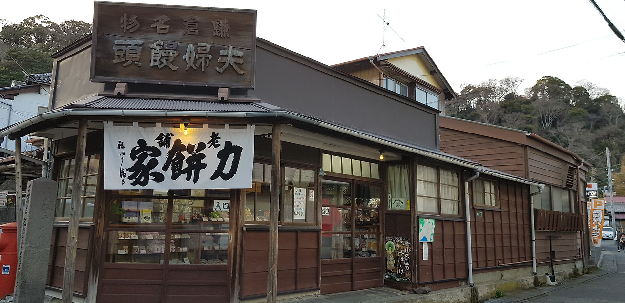 (사진) 역과 역 사이 마을 길을 걷다 보면 서핑으로 유명한 바다 마을답게 서퍼들을 위한 카페와 이색적인 숙소들을 만날 수 있다. 교료 신사에서 바닷가 쪽으로 걸어 나오면 무려 300년이 넘은 노포를 발견할 수 있는데, 이곳은 ‘치카라모치야’라는 만주 집이다. 우스꽝스러운 모양의 만주로 유명한 곳으로 가마쿠라 가면축제의 날에는 가면 모양을 한 만주를 파는 숨은 지역 명소이다.