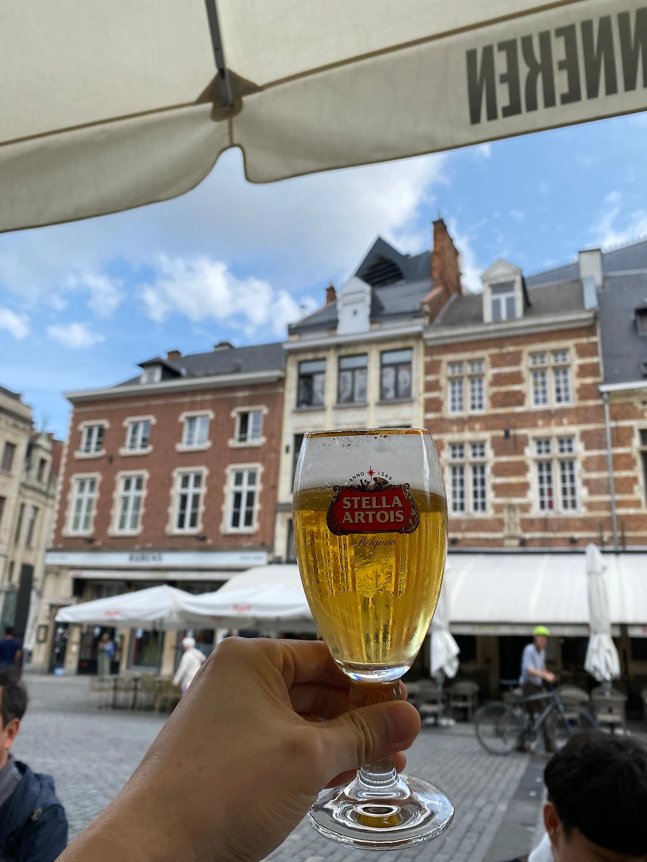 빡빡한 스케쥴로 아쉽게 스텔라 아르투아 양조장을 방문하지 못했지만 구 시청사와 성 베드로 성당 그리고 뢰벤 대학을 배경으로 스텔라 아르투아를 마시고 싶었다. 아직 오전이었지만 광장에 있는 테라스에서는 기꺼이 맥주를 판매했다. 테라스에 있던 직원은 벌써 우리의 의도를 알고 있었는지 자리에 앉자마자 스텔라 아르투아를 마시러 왔냐고 물은 뒤, 지체 없이 성배에 든 황금색 액체를 들고 나왔다.