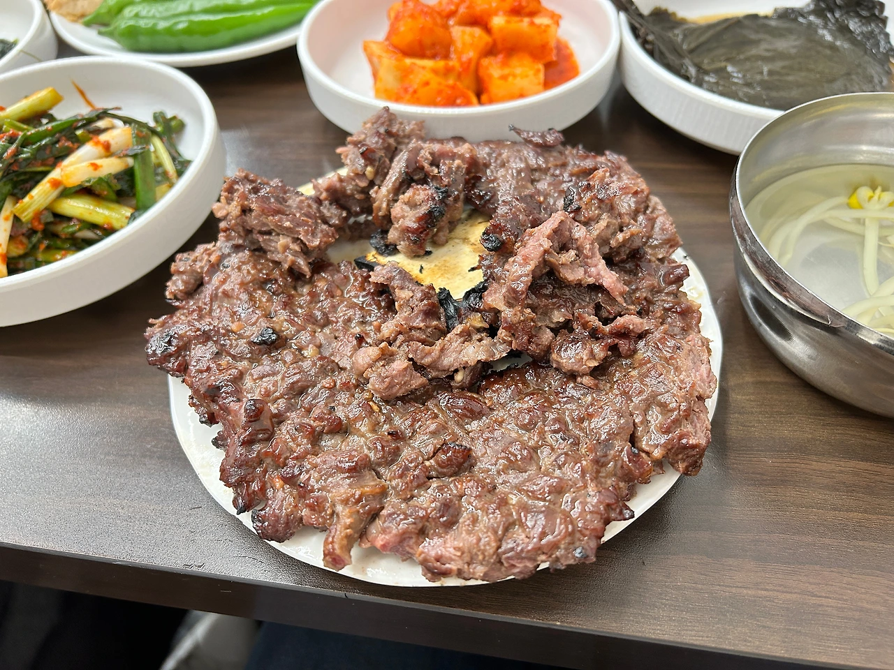 시간에 맞춰 도착하자 단출하지만 정갈한 밑반찬이 나왔다. 이내 나온 떡갈비는 넓게 치댄 고기에 갈빗대가 붙어 있었다. 향긋한 불향과 맛깔 나는 감칠맛이 일품이었다. 쫀득한 식감이 떡인지 고기인지 구분하기 힘들 정도였다. 양도 많아 비싸다는 생각은 온대간대 사라진지 오래, 만족스러운 첫 끼에 식당을 나서는 발걸음을 가볍게 했다.