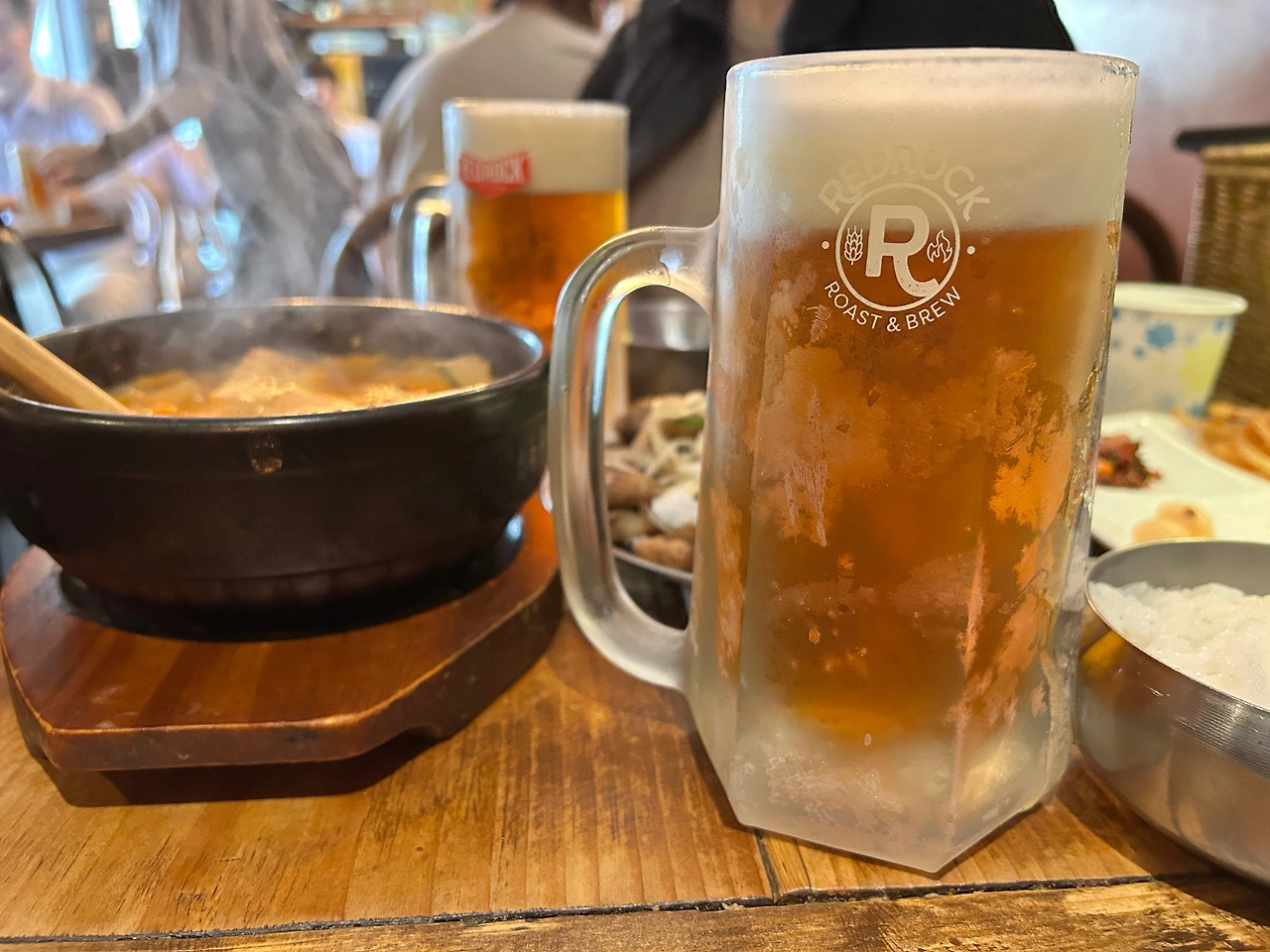맥주 신은 또 이렇게 길을 보여주시는구나. 청국장과 생맥주, 평상시였다면 볼 수 없는 조합이 이 날은 아름답고 조화로워 보였다. 새로운 대한민국을 위해 투표한 날에 어울리는 최고의 선물이기도 하고.