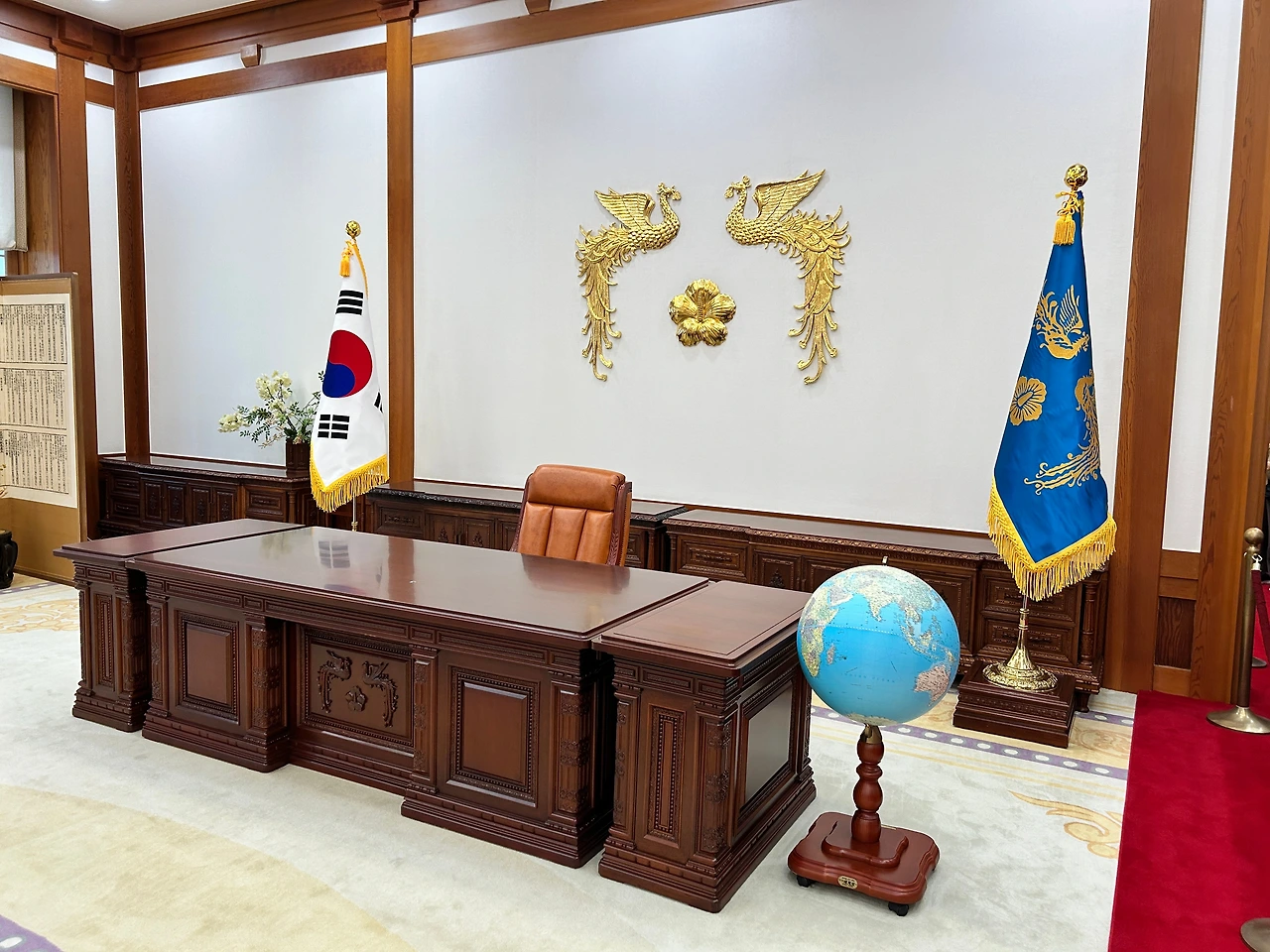 역대 대통령 사진이 있는 세종실, 각종 임명식과 수여식을 했던 충무실 그리고 대통령 집무실과 접견실들은 화려한 조명과 장식들로 반짝였지만 공허했다. 아, 이곳이 항상 대통령이 임명장을 주던 그곳이구나. 여기가 대통령이 서류에 사인을 하던 장소였네, 자꾸 TV에서 봤던 대통령의 잔상들이 계속 아른거렸다. 영혼 없는 껍데기는 이제 가야 한다.