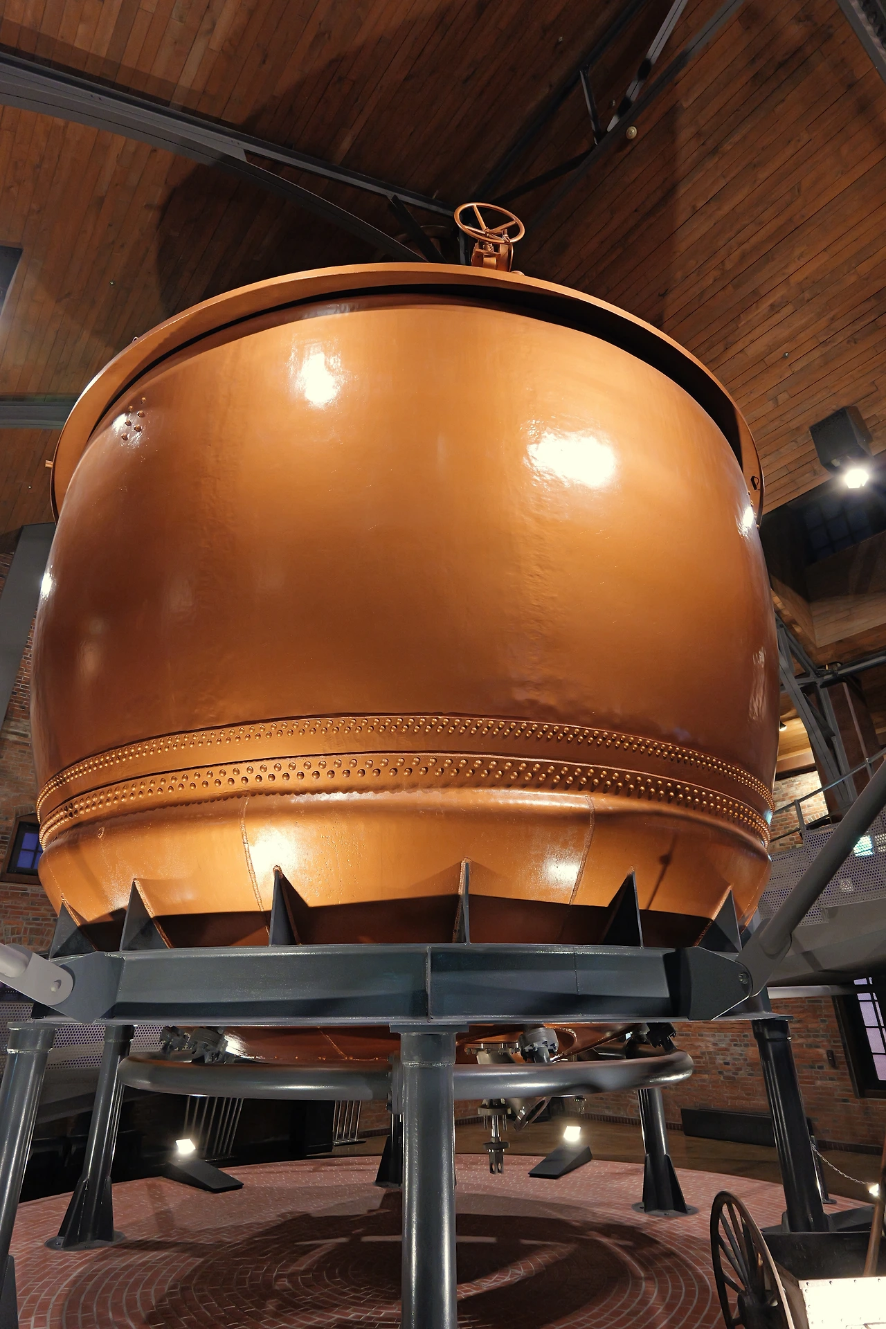 박물관 입장은 무료다. 일본어 유료 투어도 가능하나 굳이 권하지 않는다. 건물 안으로 들어서니 예전에 사용했던 거대한 끓임조가 보였다. 대략 사람 키의 서너 배는 될 듯했다. 끓임조를 따라 원형 계단을 내려오니 1964년에 사용했다는 효모 배양기가 보였다.