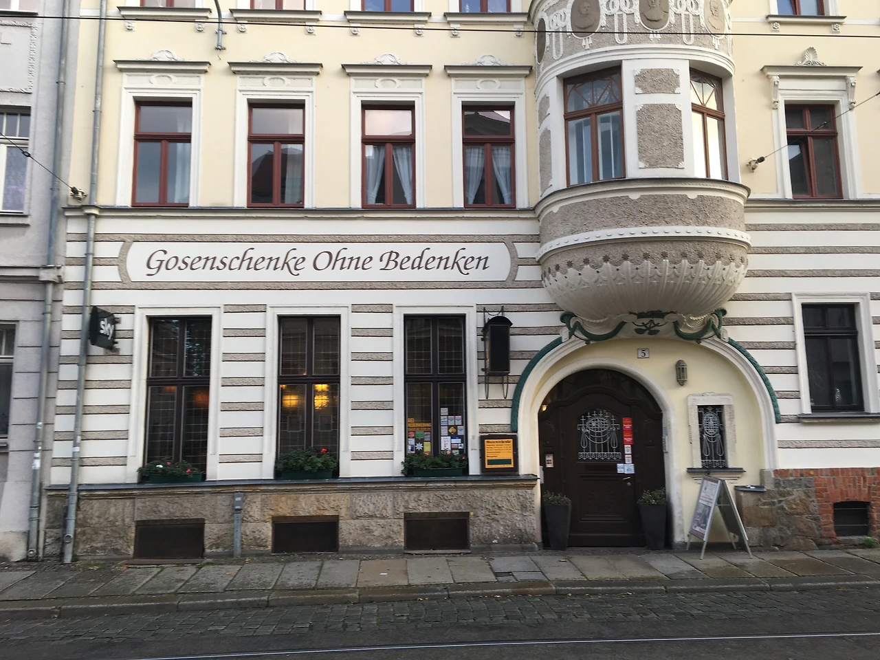 여전히 파란 하늘이 반겨준다. 오네 베덴켄에서 고제 마시기 딱 좋은 날씨다. 오네 베덴켄은 S-bahn을 타고 라이프치히 골리스(Leipzig-Gohlis) 역에 내려 약 15분 정도 걸어가야 했다. 이 곳은 유일하게 남아있는 고제펍으로 1985년 고타 로드한이 발견하기 전까지 불에 그을린 채, 버려져 있었다. 다행히 1986년 복원되었으며 지금까지 고제의 숨결을 유지하고 있는 유일한 성지로 남아있다.