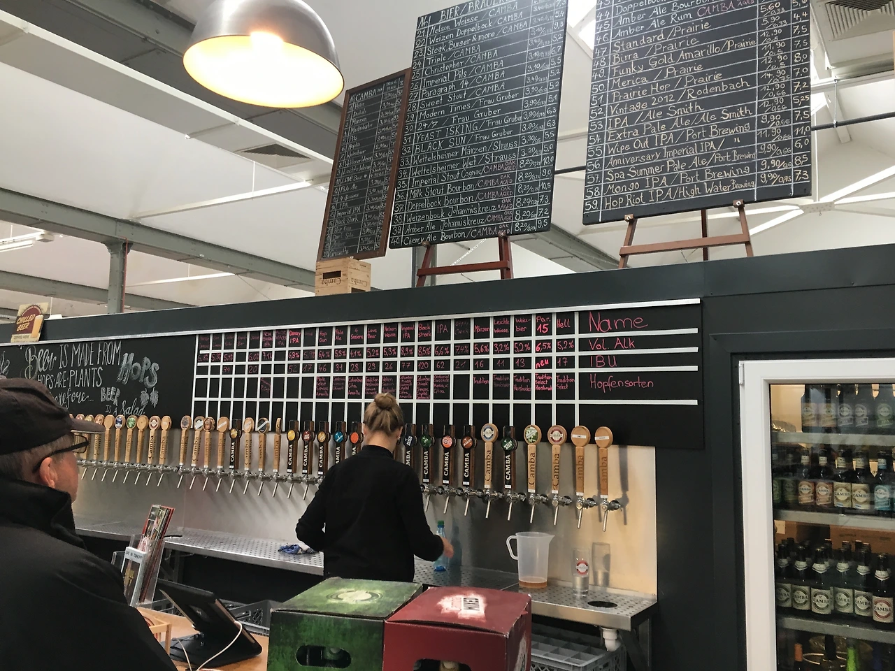 브라우콘과 캄바에서 일하고 있는 마리온은 캄바 올드 팩토리 구석구석으로 우리를 안내했다. 다소 초라해 보이는 외관과 달리 내부는 2000리터 발효조를 구비한 정식 양조시설과 레스토랑 그리고 팬샵까지 맥주에 관한 모든 것을 가지고 있었다. 화려하지는 않지만 공간을 잘 사용하는 독일 특유의 인테리어 덕분에 심플한 매력이 있었다. 수 십 개의 탭과 맥주 메뉴가 보이는 탭룸은 입이 떡 벌어질 정도였고 그 앞에는 긴 테이블과 의자가 줄을 맞춰 정렬해 있는 비어가든도 있었다. 캄바 올드 팩토리는 모든 맥주 환자들이 꿈꾸는 놀이터였다.