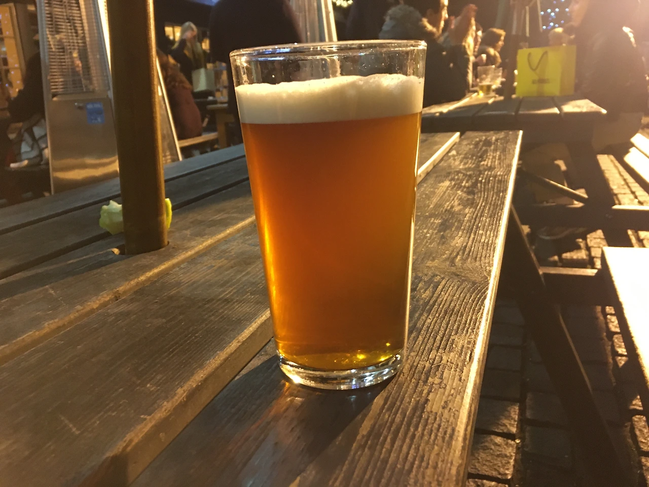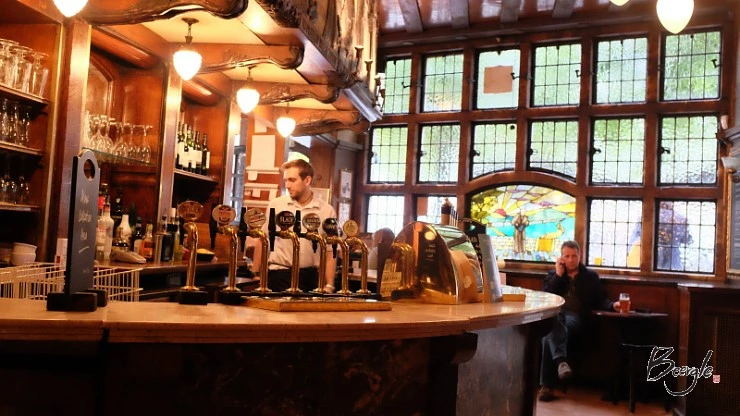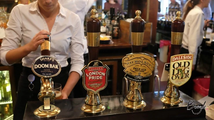애초 계획은 내부에서 식사를 하는 것이었다. 예약을 안 받는 곳이라 웨이팅을 해야 했지만 연말이라 이미 만석이었다. 빠른 포기는 편한 법, 우리는 야외에서 맥주를 즐기며 여독을 풀기로 했다. 맥주를 주문하기 위한 카운터는 건물 1층 오른쪽에 있었다. 영국 펍에서는 카운터에서 돈을 지불한 후, 직접 맥주를 가져와야 한다. 독일과 달리 따로 잔 보증금을 요구하지는 않는다.