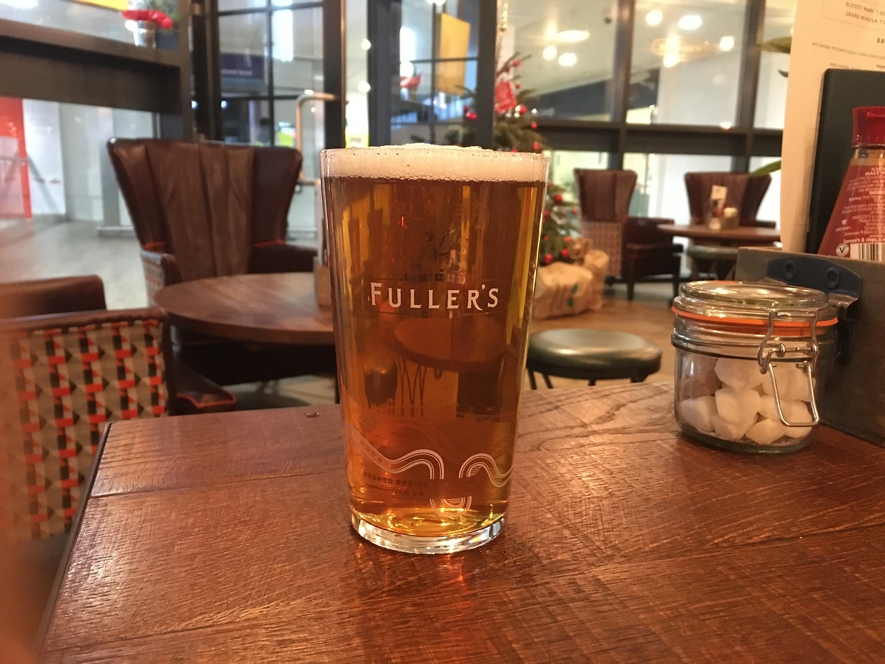 그러나 우리 같은 여행자는 이 형편없음도 너그러이 받아들일 준비가 되어 있는 족속들이다. 다른 옵션을 포기하고 이 곳에 온 것은 클래식한 영국 인테리어와 음식을 기꺼이 즐기고자 함이 아니던가. 게다가 아침 10시에 리얼 에일을 주문해도 눈치 볼 일이 없으니 불만은 잠시 꺼두기로 했다. 모닝 맥주를 바라보는 탐탁지 않은 아들의 시선을 뒤로하고 내 앞엔 풀러스 런던 프라이드 캐스크 에일이 놓였다. 낮게 깔린 잿빛 구름과 비가 내릴 듯 무거운 공기가 느껴지는 오늘 같은 날씨에 가벼운 맥주 한 잔은 움츠려 든 몸을 이완시켜주는 고마운 존재다.
