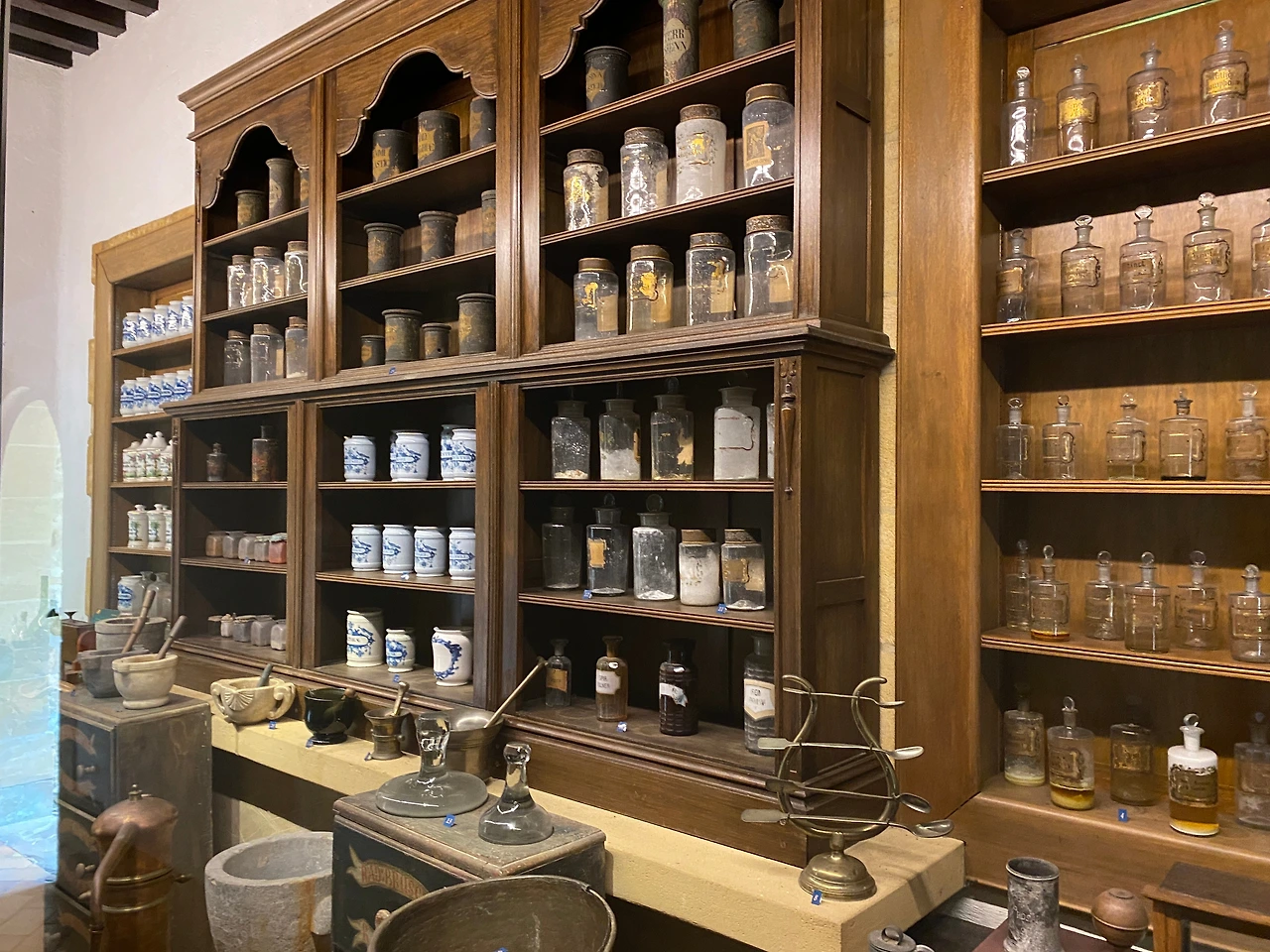 유적지에서 발굴한 유물을 둘러본 후, 밖으로 향하는 문을 나서니 옛 수도원 터가 한눈에 들어왔다. 공원처럼 꾸며 놓은 곳곳에 과거 시설을 복원한 공간이 있었다. 특히 약을 조제하던 도구를 모아놓은 곳이 흥미로웠다. 약초를 담았던 병과 무게를 재던 저울을 보니 수도원이 지역 공동체에 어떤 존재였는지 가늠할 수 있었다.
