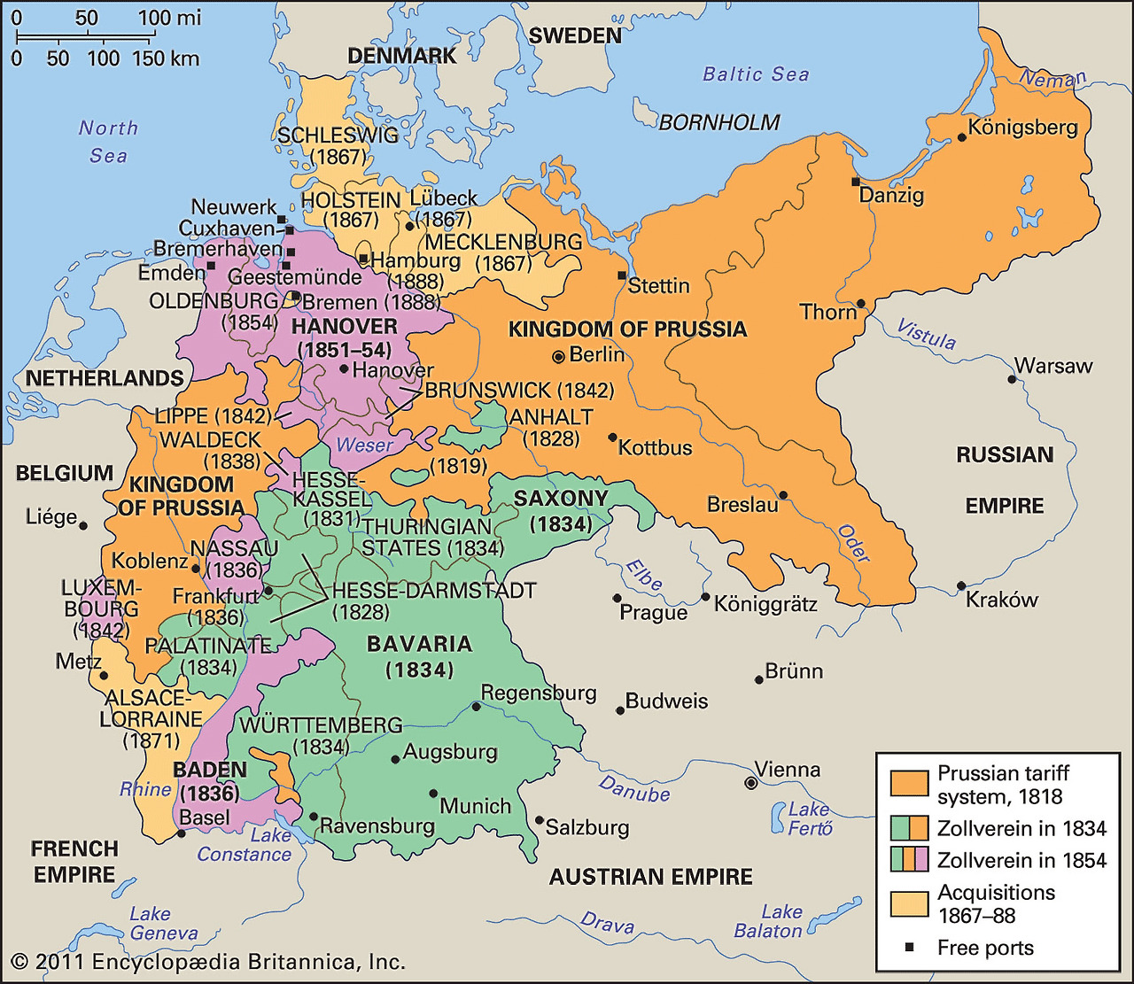 상호 의존이 강화되면서 독일 지역은 실질적으로 하나의 경제권으로 묶이게 되었다. 그리고 마침내, 프로이센이라는 강력한 국력과 리더십을 갖춘 중심 국가가 등장하여 독일 제국이라는 통합의 마침표를 찍은 것이다.