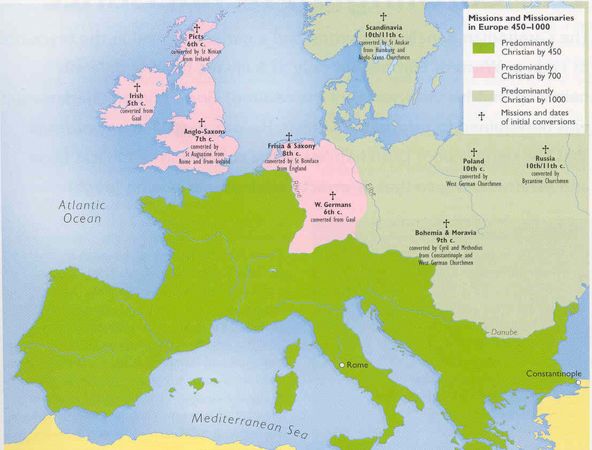 그나마 이 와중에도 사라지지 않은 것이 있었다면 기독교였다. 기독교는 이미 로마 말기에 유럽 전역으로 퍼져 있었고, 로마의 몰락 이후에도 살아남아 결속의 매개체로 작용했다.