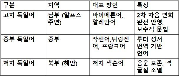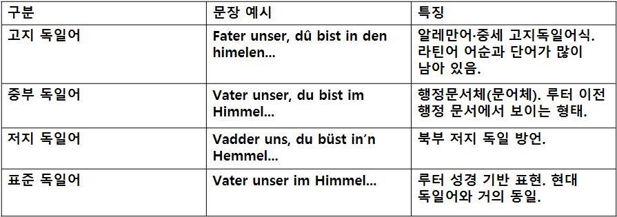 루터 이전에 독일어는 독일어는 크게 세 갈래로 나뉘었다. 남부 독일, 오스트리아, 스위스 등지에서 쓰이던 고지 독일어, 라인란트에서 구동독 동부까지 분포한 중부 독일어, 그리고 북부 독일과 발트해 연안에서 사용된 저지 독일어였다.