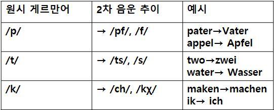 2차 음운 추이란 게르만어가 고지 독일어로 발전하는 과정에서 생긴 변화로 주로 파열음 계열에서 발생하였다. 주로 파열음 p와 k가 각각 파찰음인 pf와 마찰음인 ch로 바뀌는 변화였다.