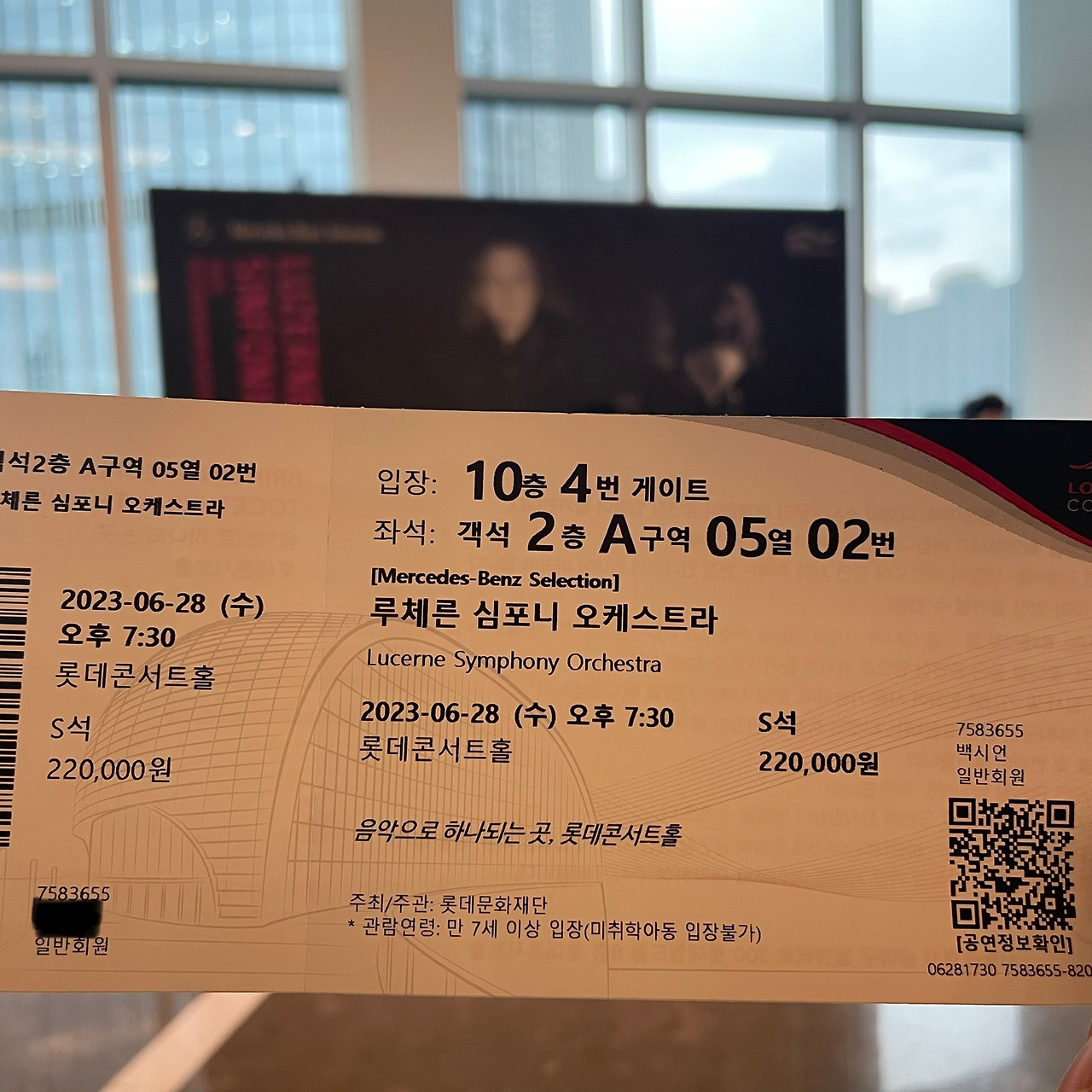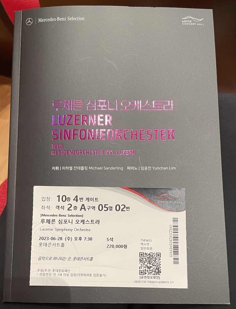 그의 연주를 들을수록 실황연주 라이브로 듣고 싶어졌다. 공연스케줄을 검색하고 이미 매진된 티켓을 어렵게 구했고 6월 28일 롯데콘서트홀 스위스 루체른 필하모닉 협연을 관람했다.