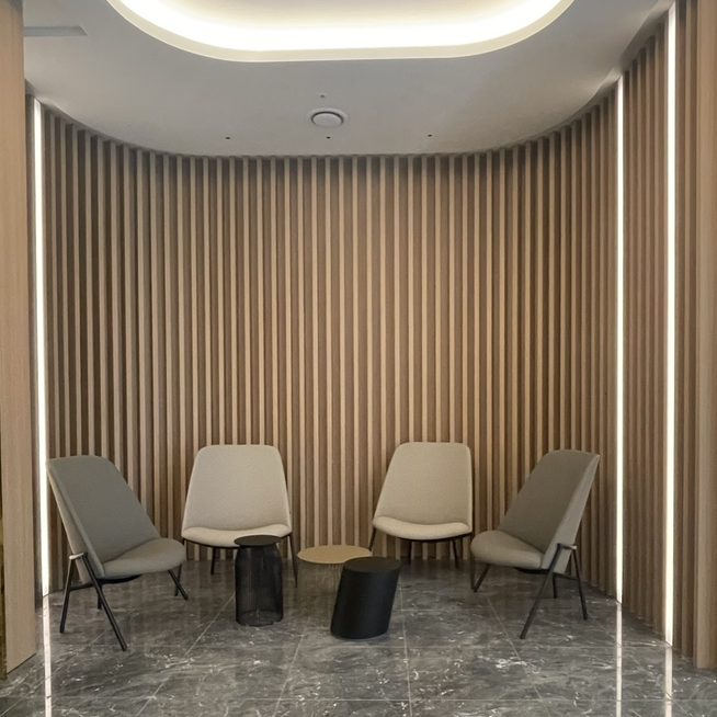 라운지의 유선형 벽은 허그를 상징하며 이웃과의 포용과 수용의 의미를 담았습니다. 이곳에서 이웃과의 긍정적 소통이 넘쳐 나길 바랍니다.
