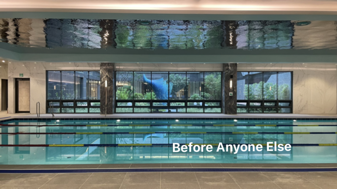 걸어서 떠나는 일상여행 그랜드투어로, 지중해 휴양지 같은 수영장에서 입주민들이 누릴 멋진 커캉스가 기대됩니다.