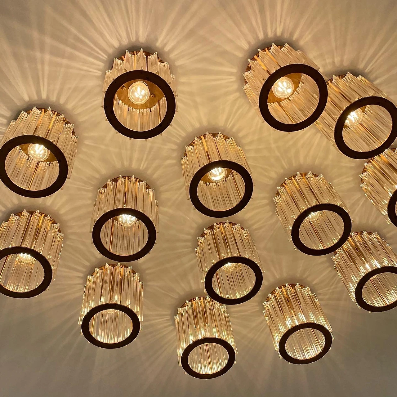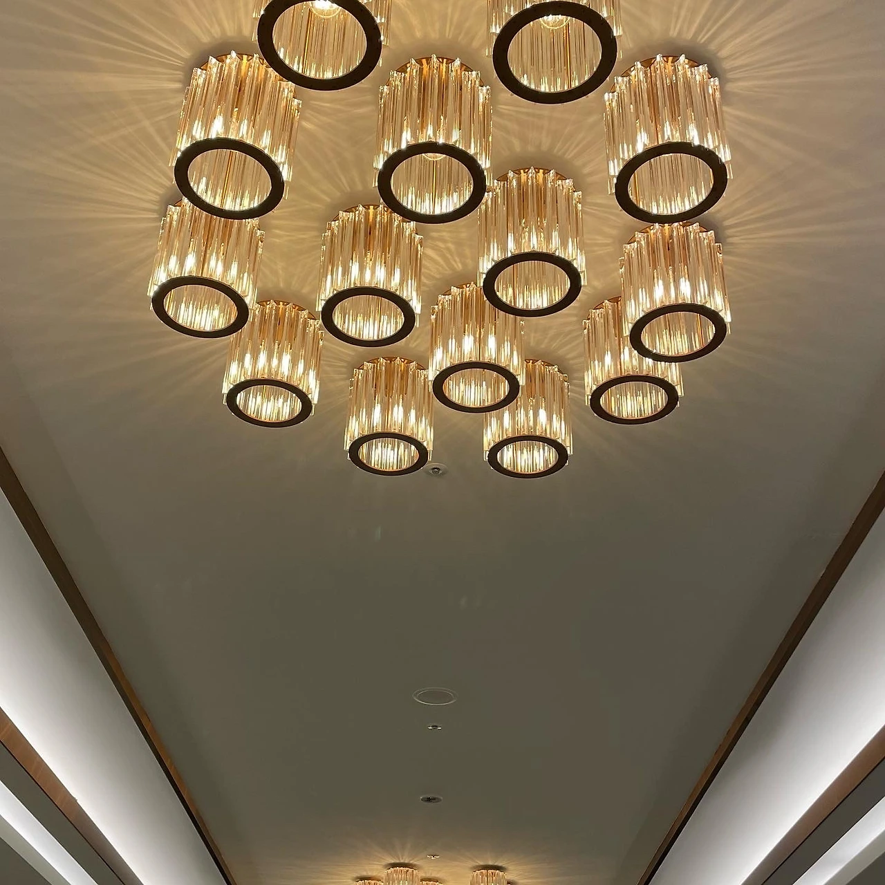 샹들리에 크기가 스펙상에 다소 큰 느낌이 들어 실물크기를 모형으로 확인해 보기로 했습니다. 그 과정을 통해 크기를 줄였고 수량을 늘렸습니다. 비용은 증가되는 부분이지만 디자인 완성도를 위해 전기팀장과 협력사 담당자분들과의 협업을 통해 지금의 완성된 조명으로 설치하게 되었지요.