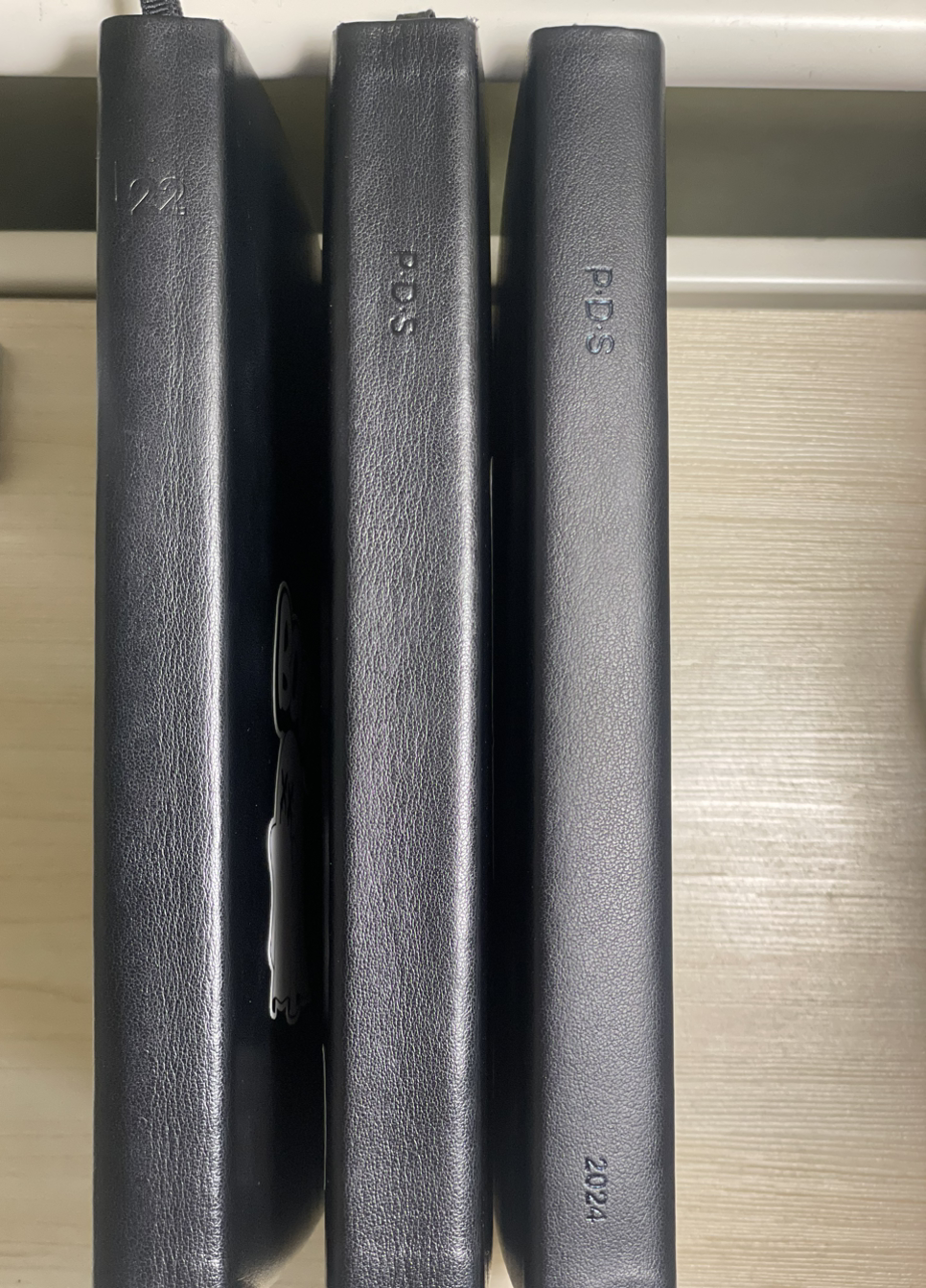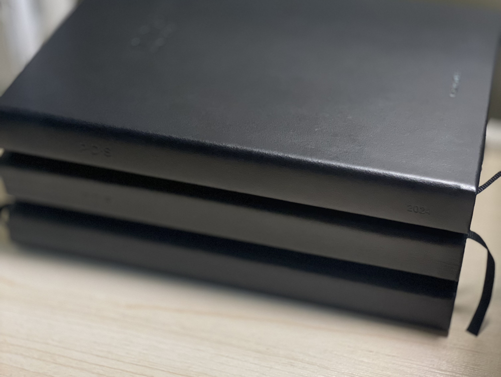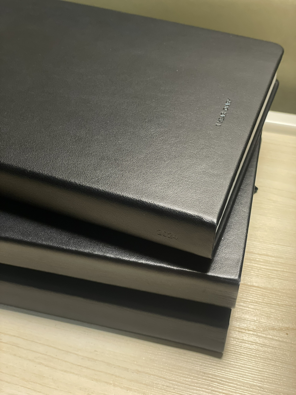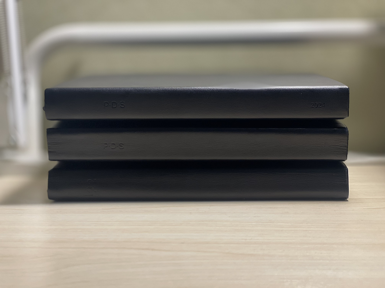 같은 크기, 같은 커버, 같은 내지를 사용하며 매년 조금씩 업그레이드되고 있습니다. 2024년 커버에 연도를 표기하는 방식이 바뀌었군요. 측면 하단에 연도를 표기하니 여러 해 같이 세워두면 연도가 구분됩니다.