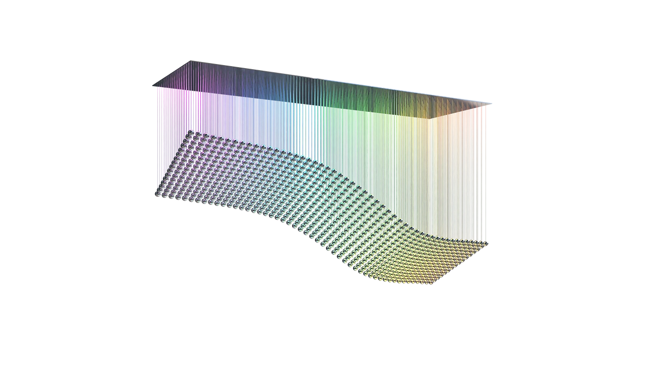 눈을 깜빡거릴 때마다 달라지는 RGB 라이팅의 색깔은 나비가 춤을 추는 모습 같습니다. 장자의 호접몽에서 영감을 받은 이 작품은 작가 심영철교수의 작품으로 작가는 입주민들의 빛나는 인생을 바라는 염원을 담았습니다..