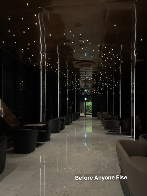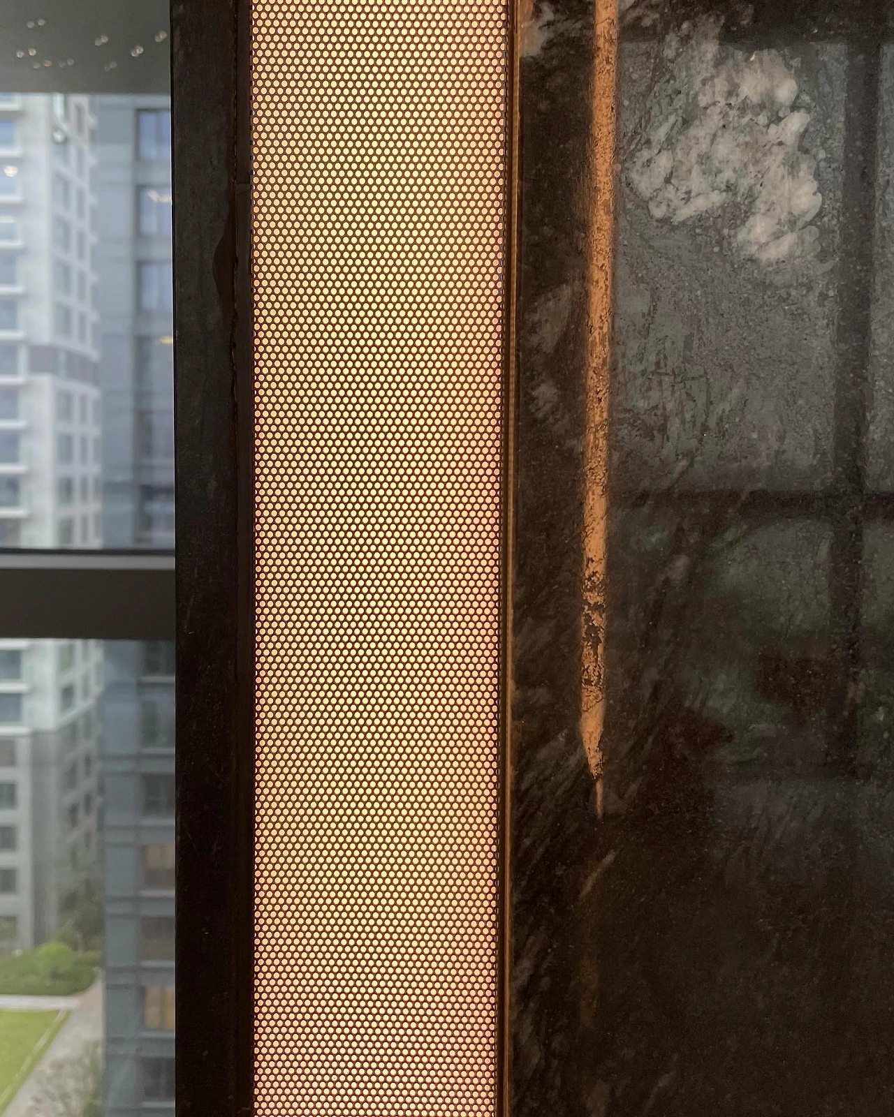 원웨이필름 색상은 기둥 대리석의 멀티컬러를 고려하여 찾은 색상으로 커스텀했고 혹시나 조명이 꺼져있을 때는 대리석의 일부로 보이게 했습니다.